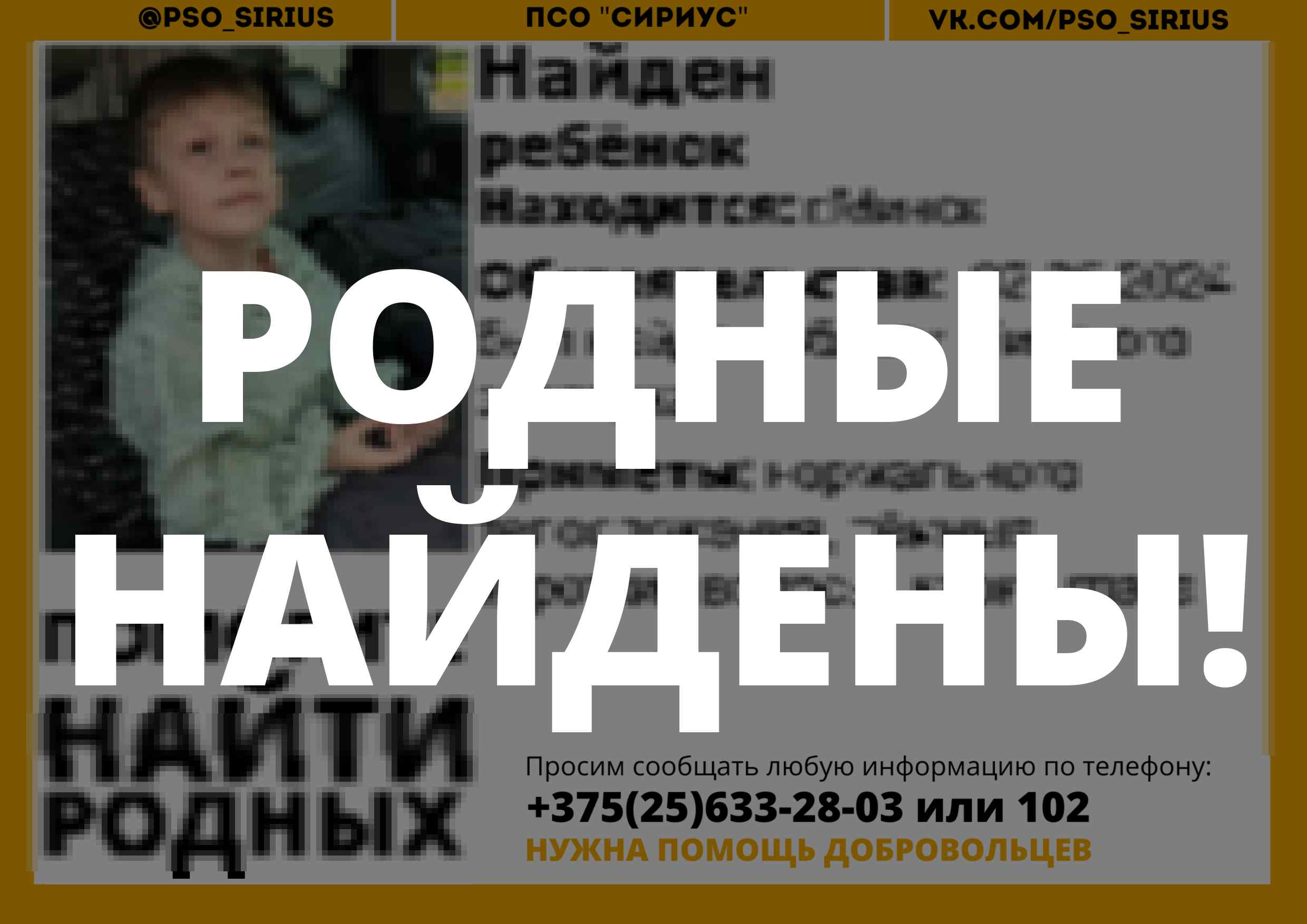 Всех, кто владеет информацией, просим сообщить: ПСО "Сириус" +375(25)633-28-03 |