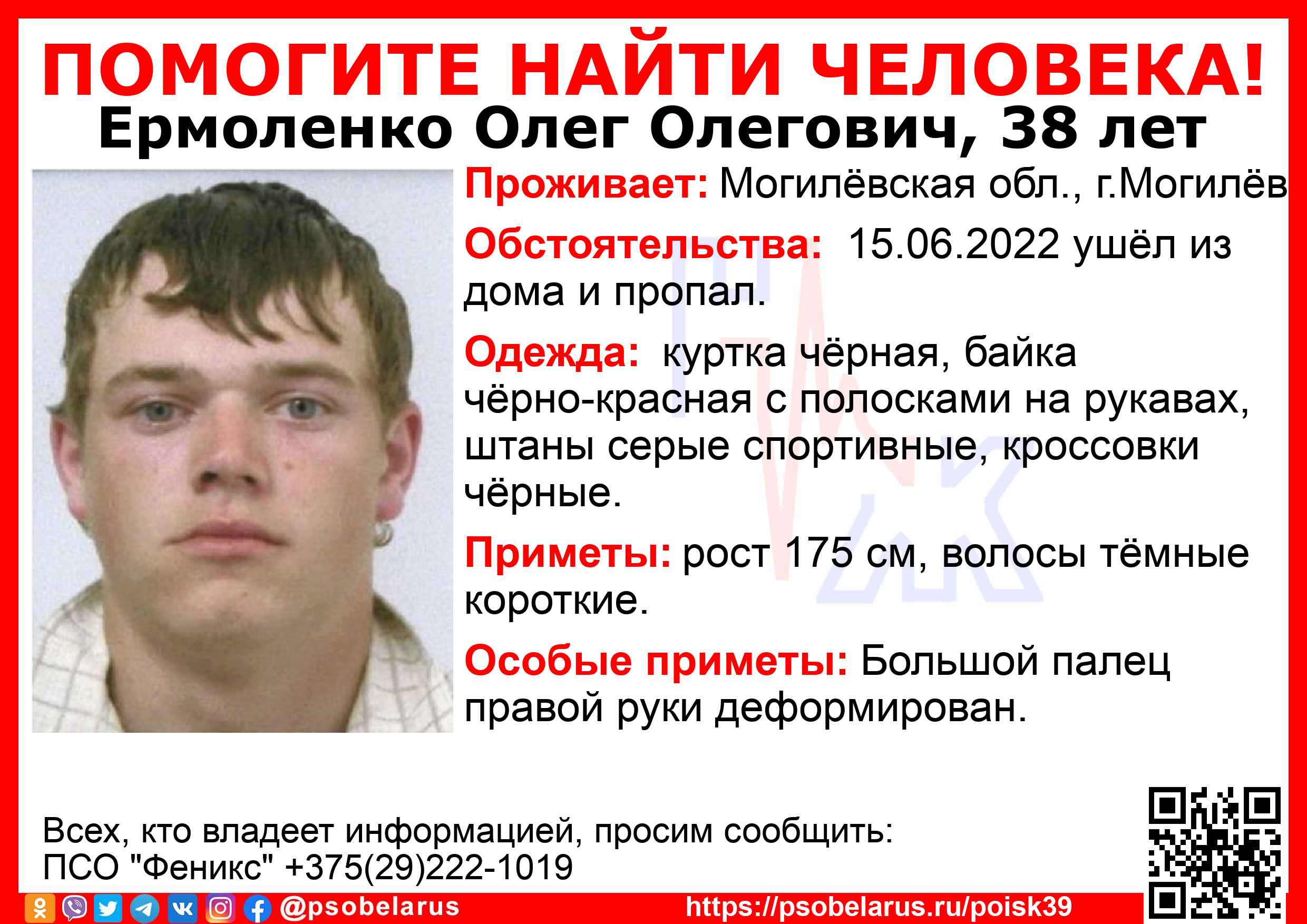 Всех, кто владеет информацией, просим сообщить: ПСО "Феникс" +375(29)222-1019 |