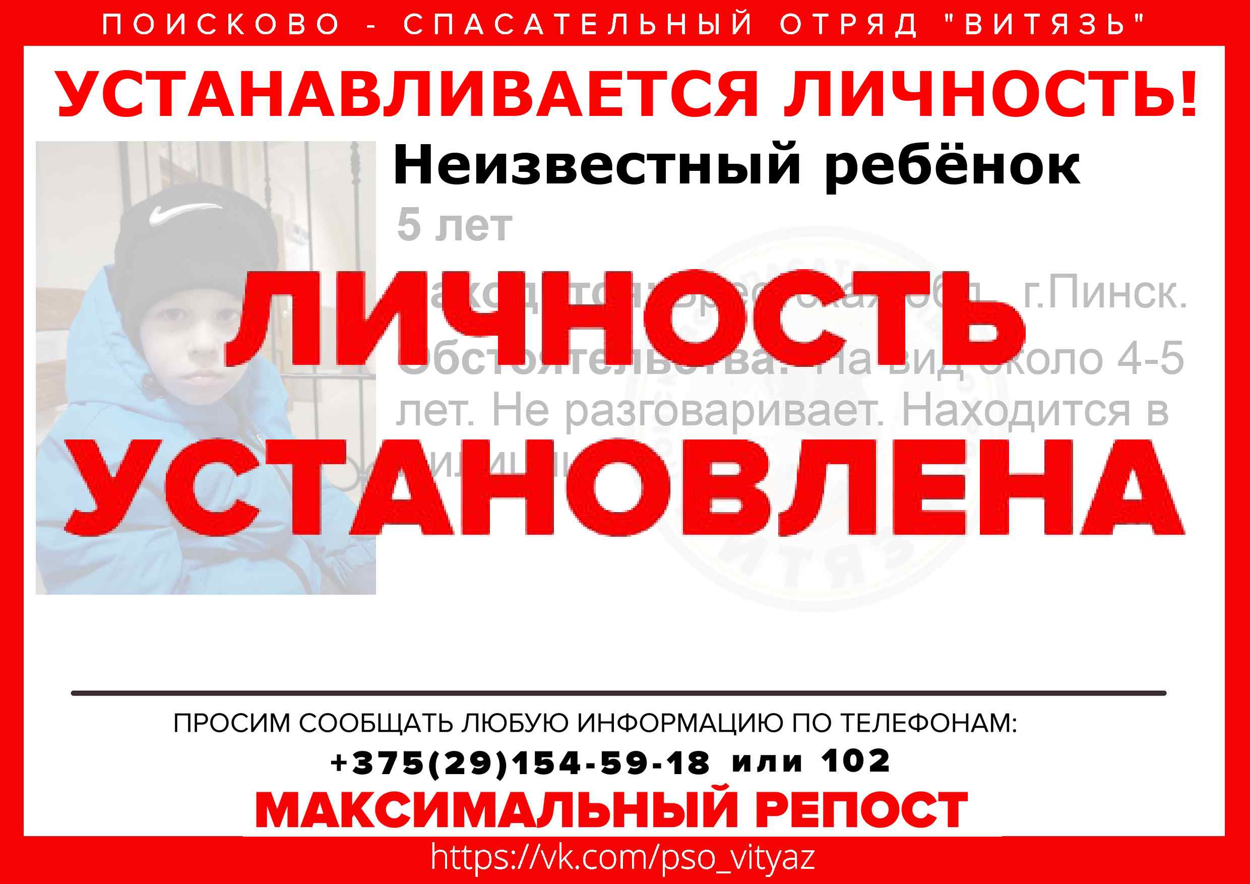 Всех, кто владеет информацией, просим сообщить: ПСО "ВИТЯЗЬ" +375(29)154-59-18 |