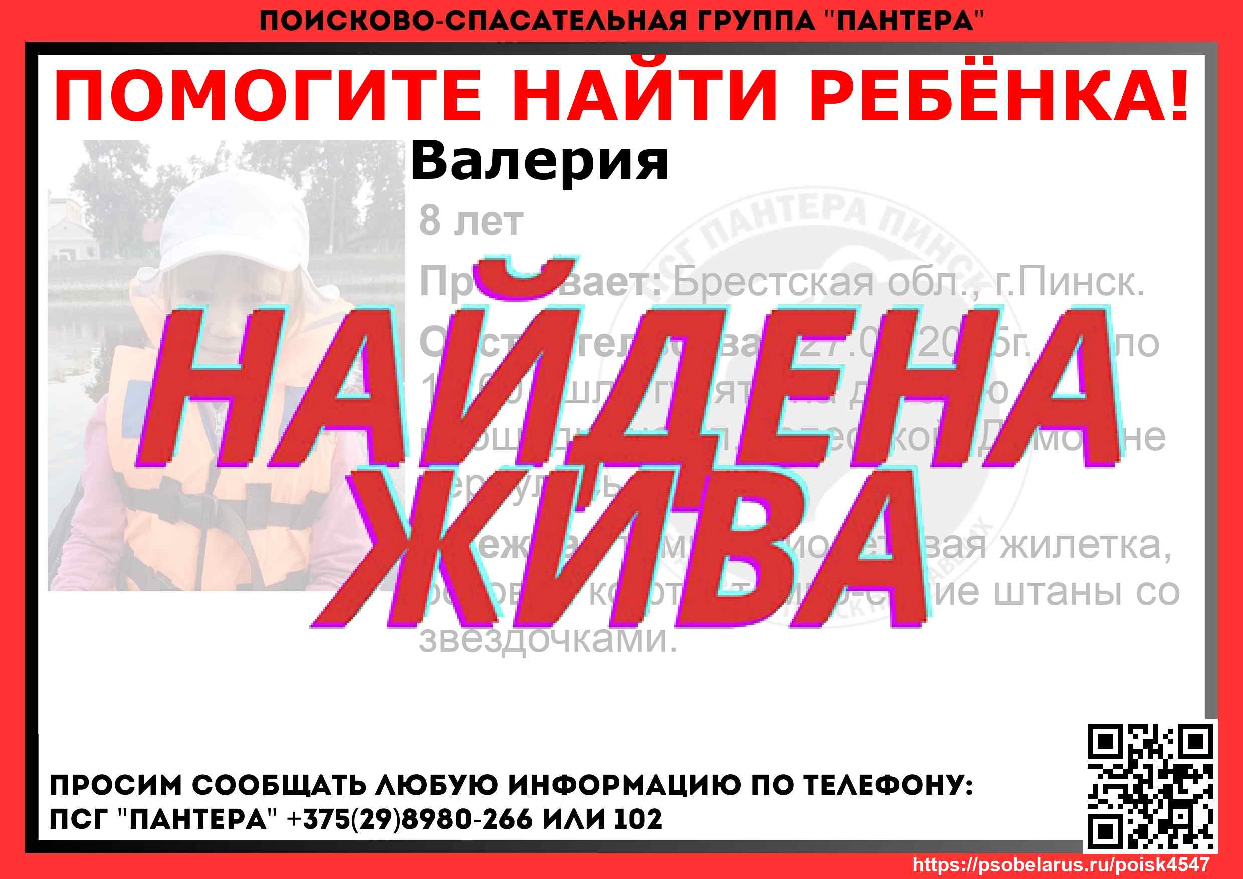 Всех, кто владеет информацией, просим сообщить: ПСГ "Пантера" +375(29)8980-266 |