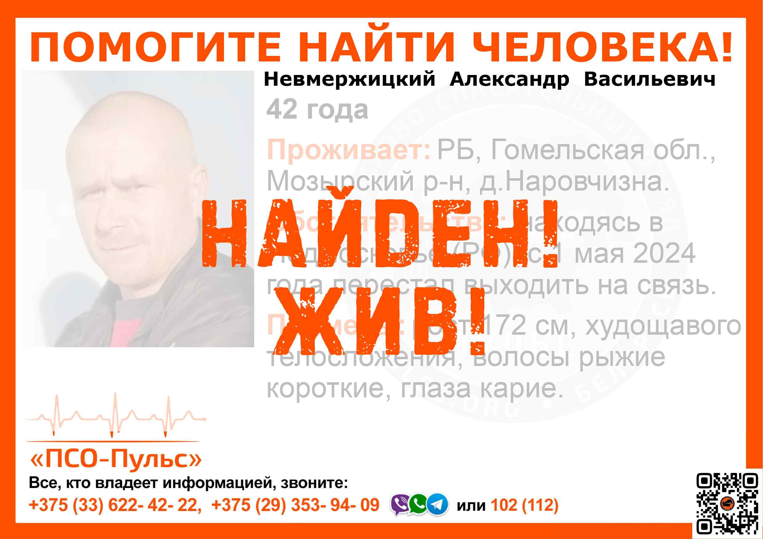 Всех, кто владеет информацией, просим сообщить: ПСО "ПСО-Пульс" +375(33)622-4222 |