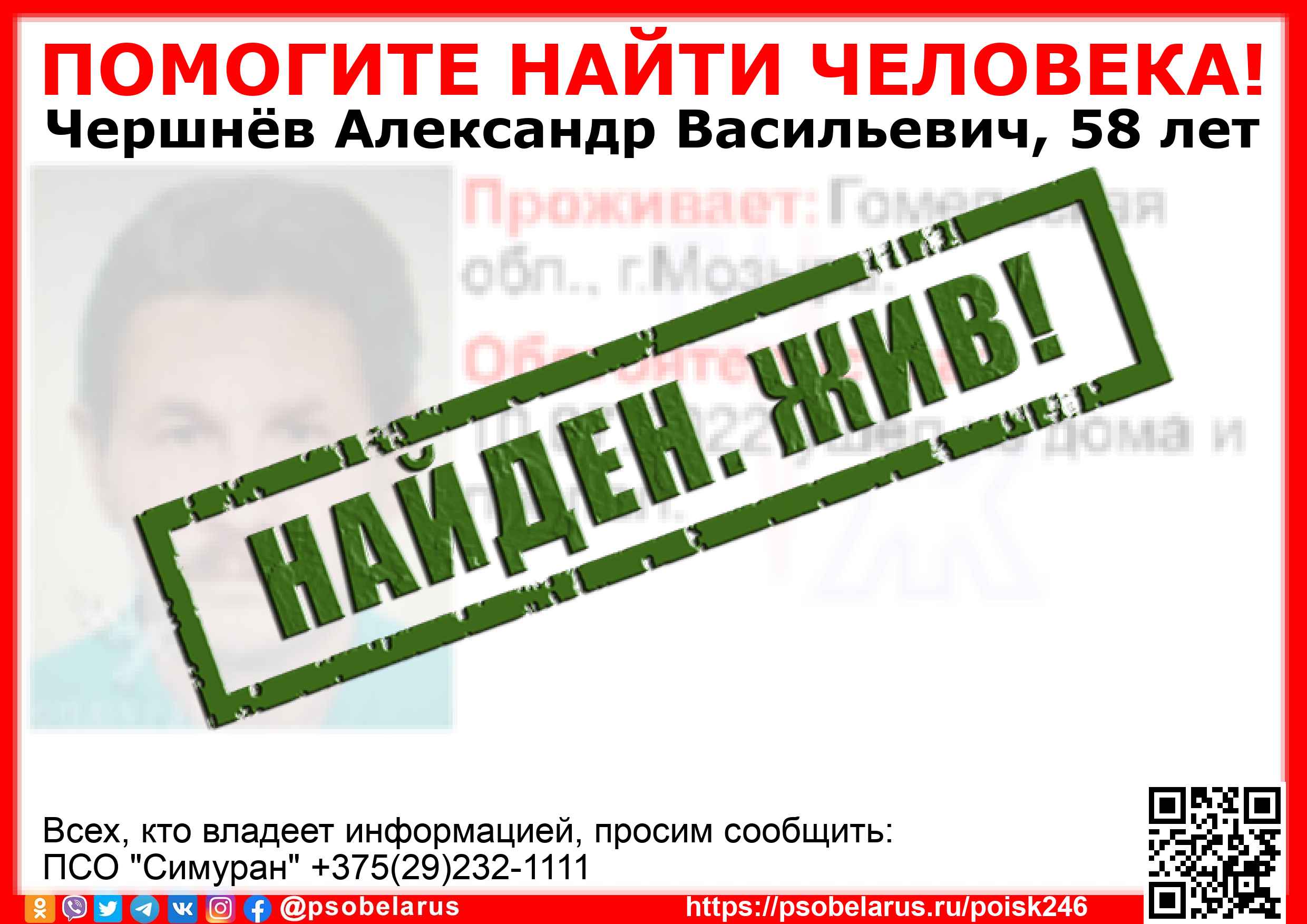 | Всех, кто владеет информацией, просим сообщить: ПСО "Симуран" +375(29)232-1111 |  |