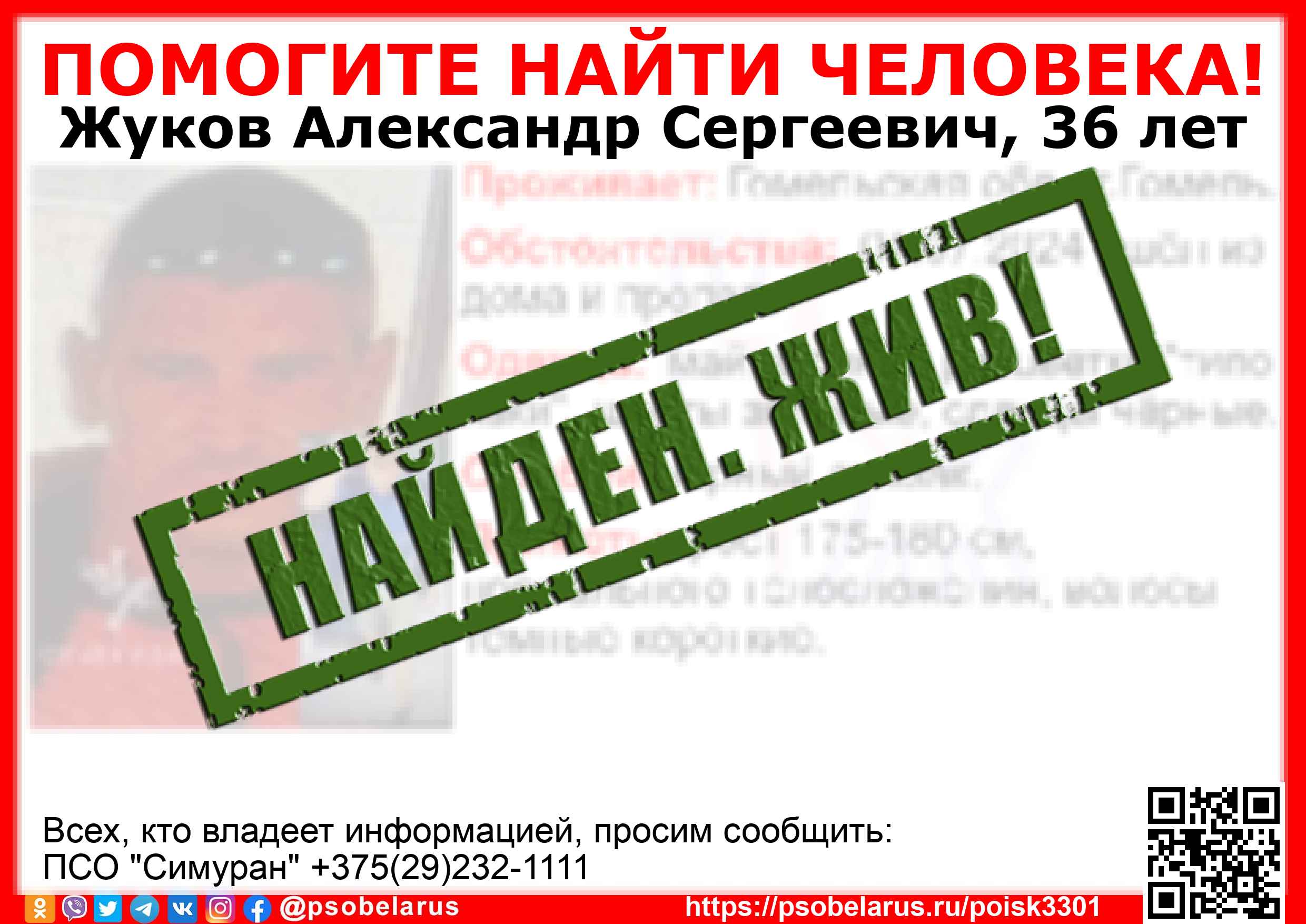 Всех, кто владеет информацией, просим сообщить: ПСО "Симуран" +375(29)232-1111  |