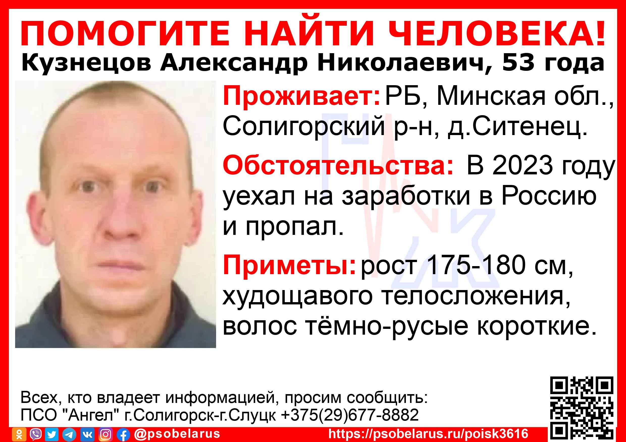 Всех, кто владеет информацией, просим сообщить: ПСО "Ангел" г.Солигорск-г.Слуцк +375(29)677-8882 |