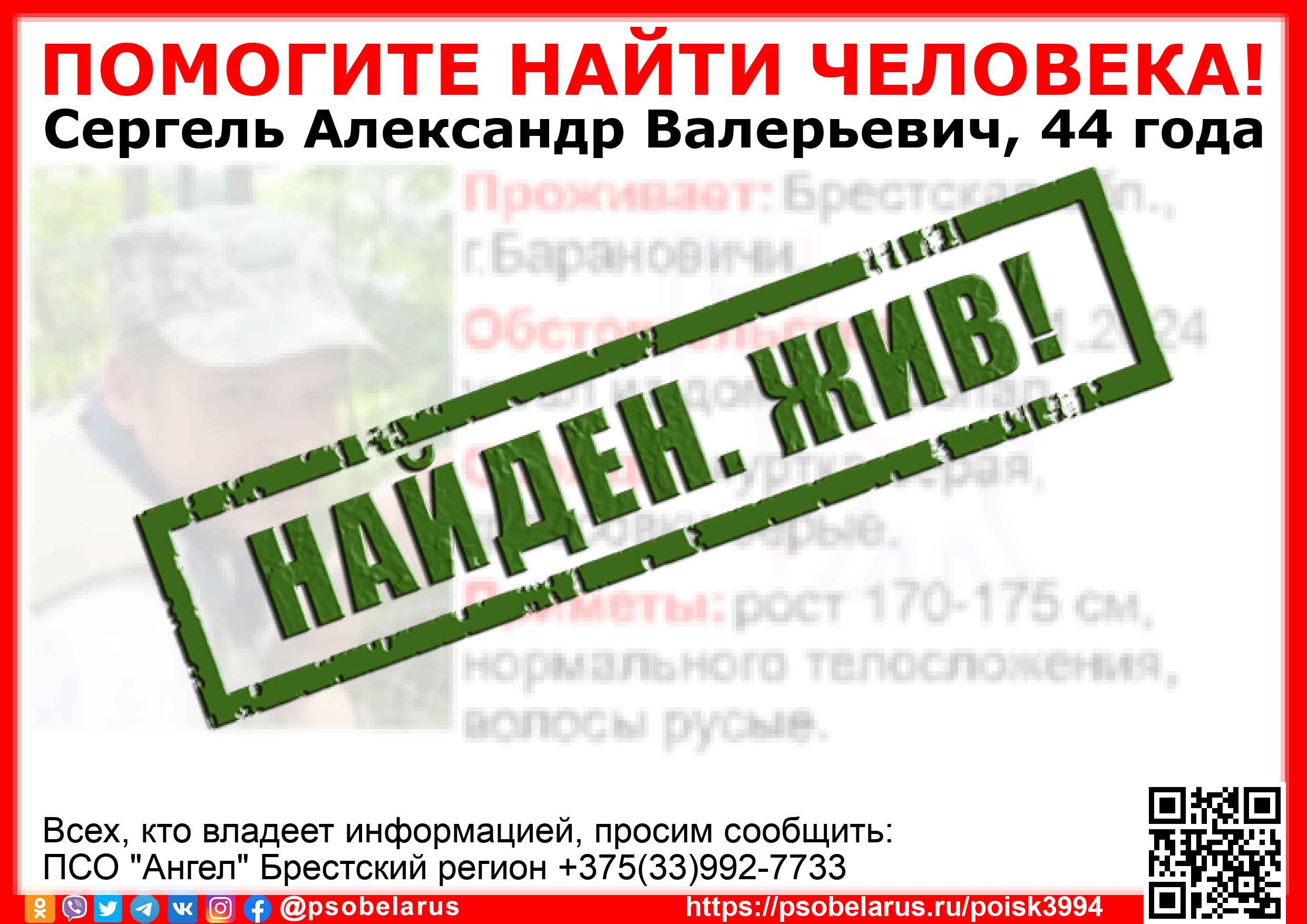 | Всех, кто владеет информацией, просим сообщить: ПСО "Ангел" Брестский регион +375(33)992-7733 |  |