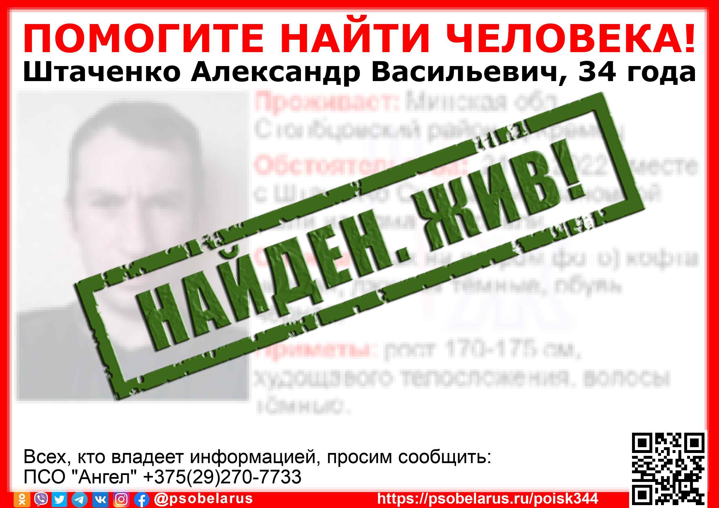 | Всех, кто владеет информацией, просим сообщить: ПСО "Ангел" +375(29)270-7733 |  |