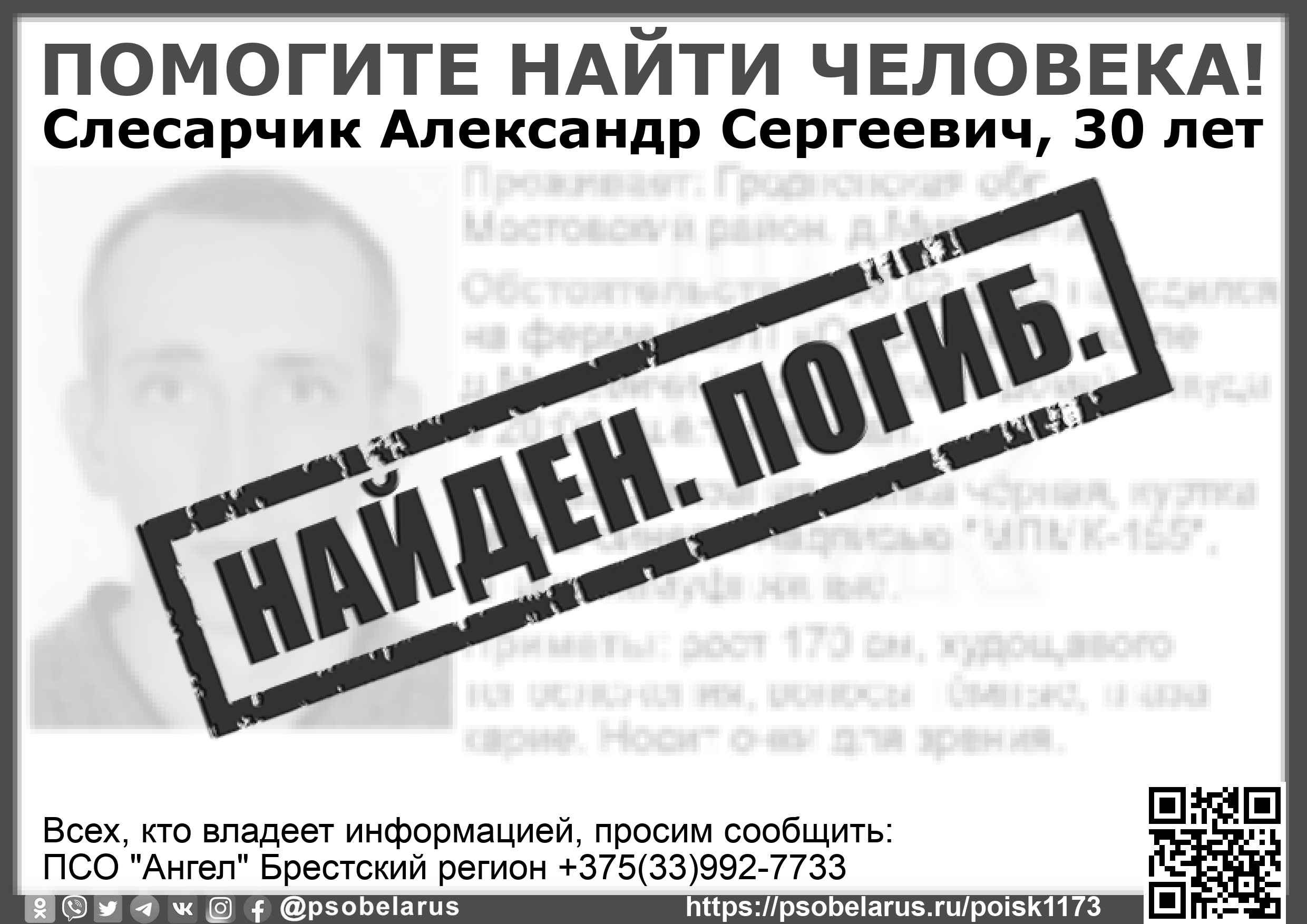 Всех, кто владеет информацией, просим сообщить: ПСО "Ангел" Брестский регион +375(33)992-7733 |