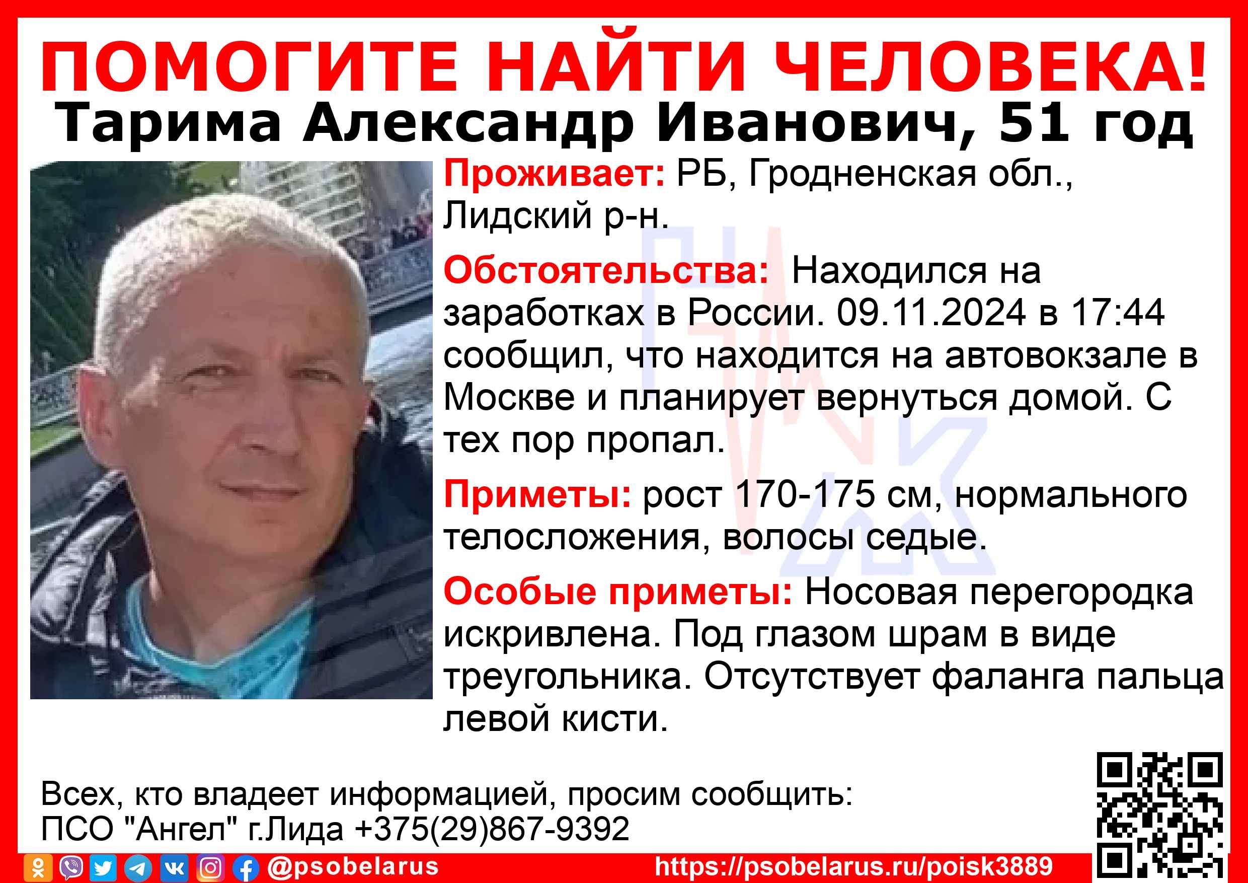 Всех, кто владеет информацией, просим сообщить: ПСО "Ангел" г.Лида +375(29)867-9392 |