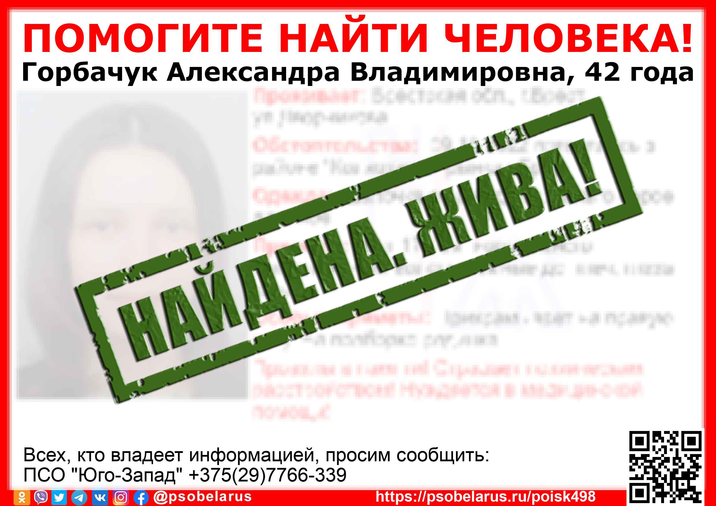 | Всех, кто владеет информацией, просим сообщить: ПСО "Юго-Запад" +375(29)7766-339 |  |