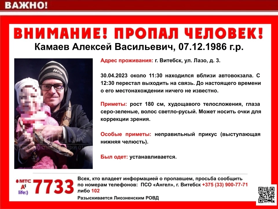 Всех, кто владеет информацией, просим сообщить: ПСО "Ангел" г.Витебск +375(33)900-7771 |