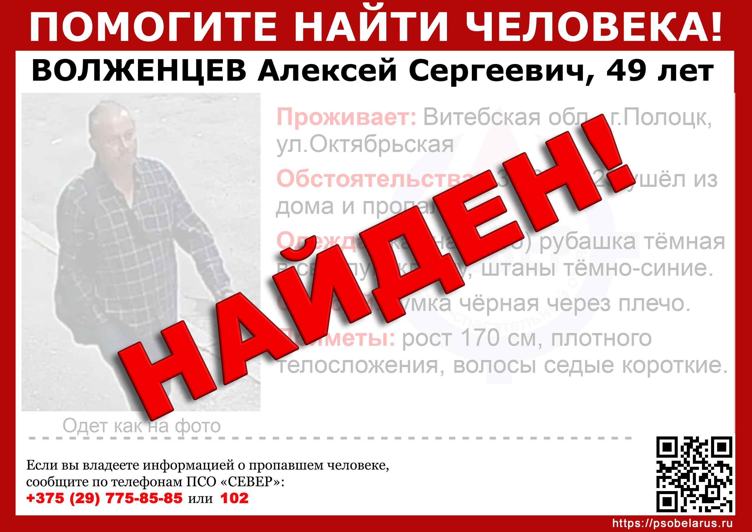 Всех, кто владеет информацией, просим сообщить: ПСО "СЕВЕР" +375(29)775-8585 |