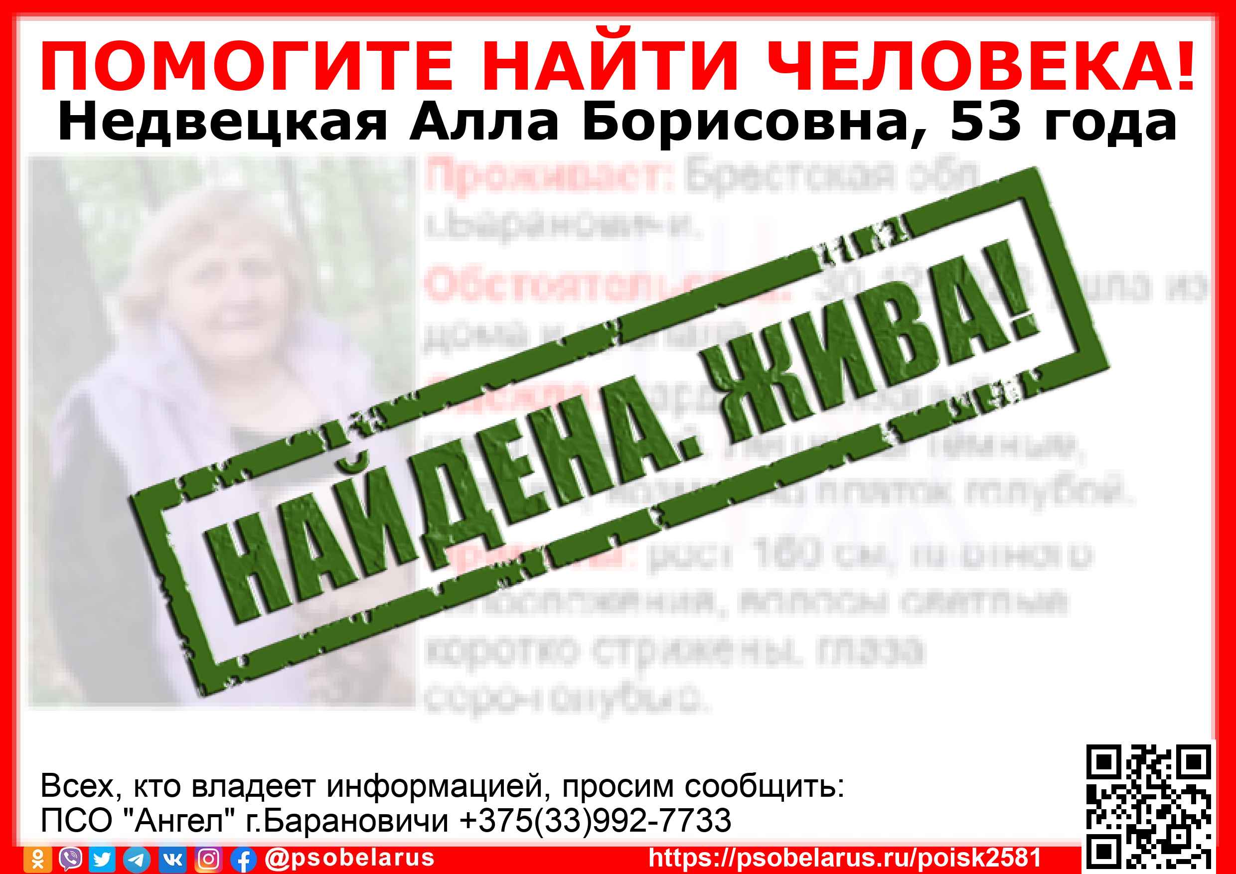 Всех, кто владеет информацией, просим сообщить: ПСО "Ангел" г.Барановичи +375(33)992-7733 |