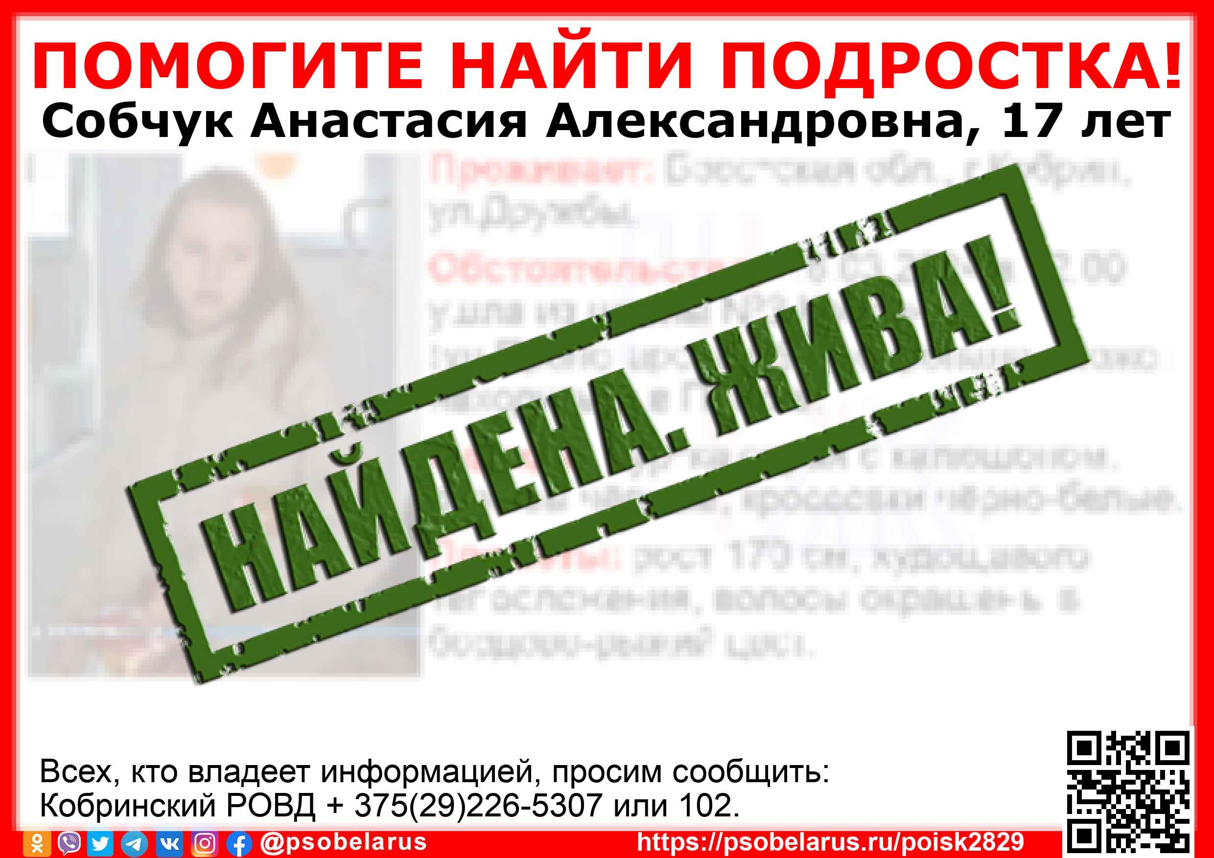 Всех, кто владеет информацией, просим сообщить: Кобринский РОВД + 375(29)226-5307 или 102. |