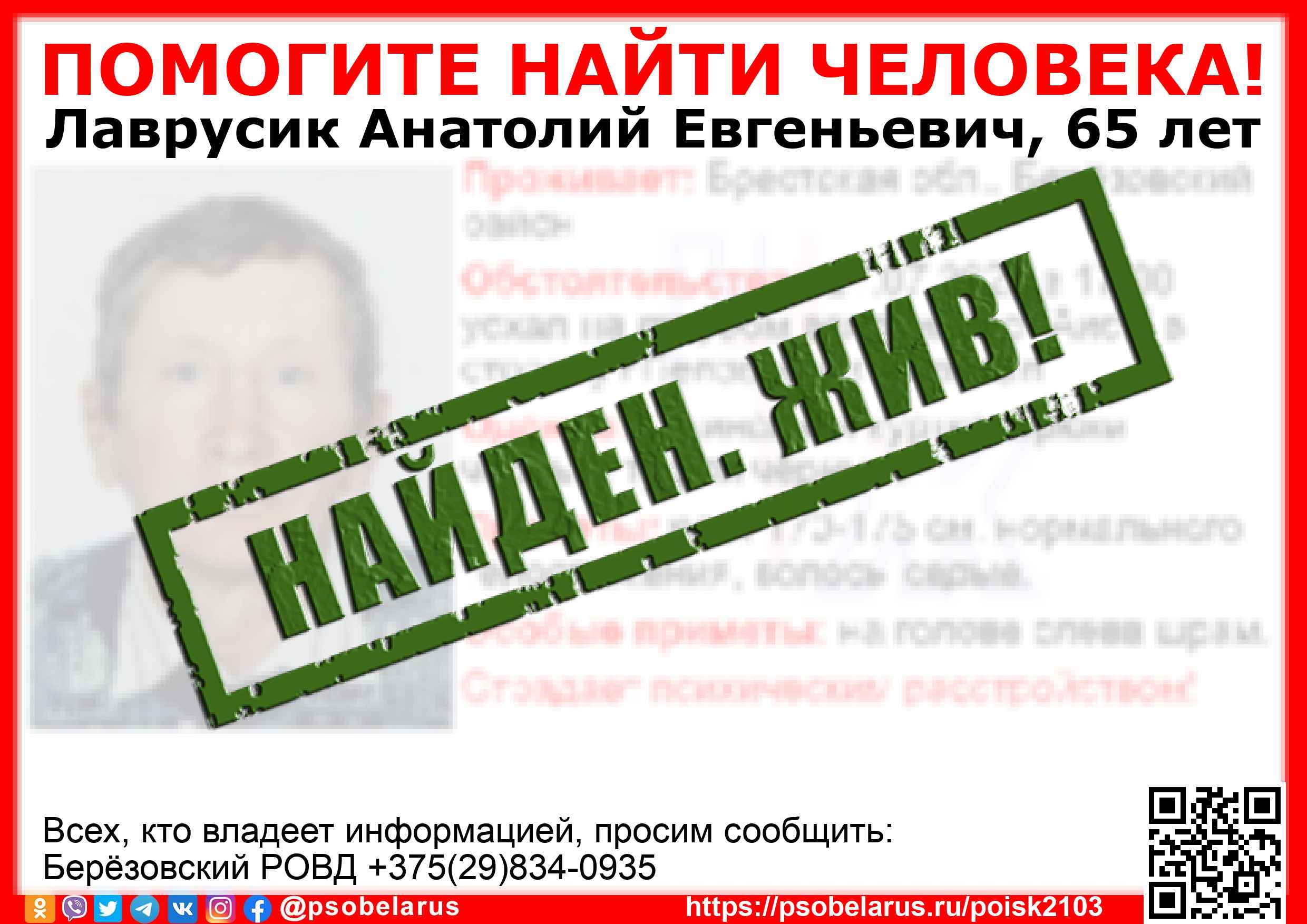 Всех, кто владеет информацией, просим сообщить: Берёзовский РОВД +375(29)834-0935 |