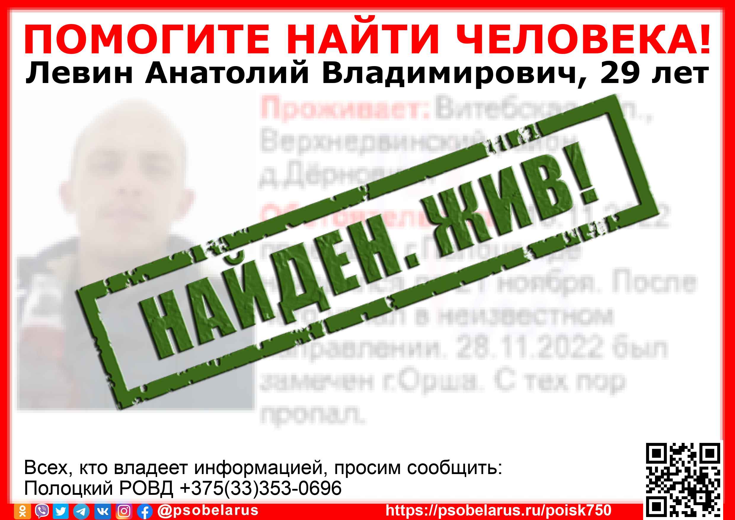 Всех, кто владеет информацией, просим сообщить: Полоцкий РОВД +375(33)353-0696 |