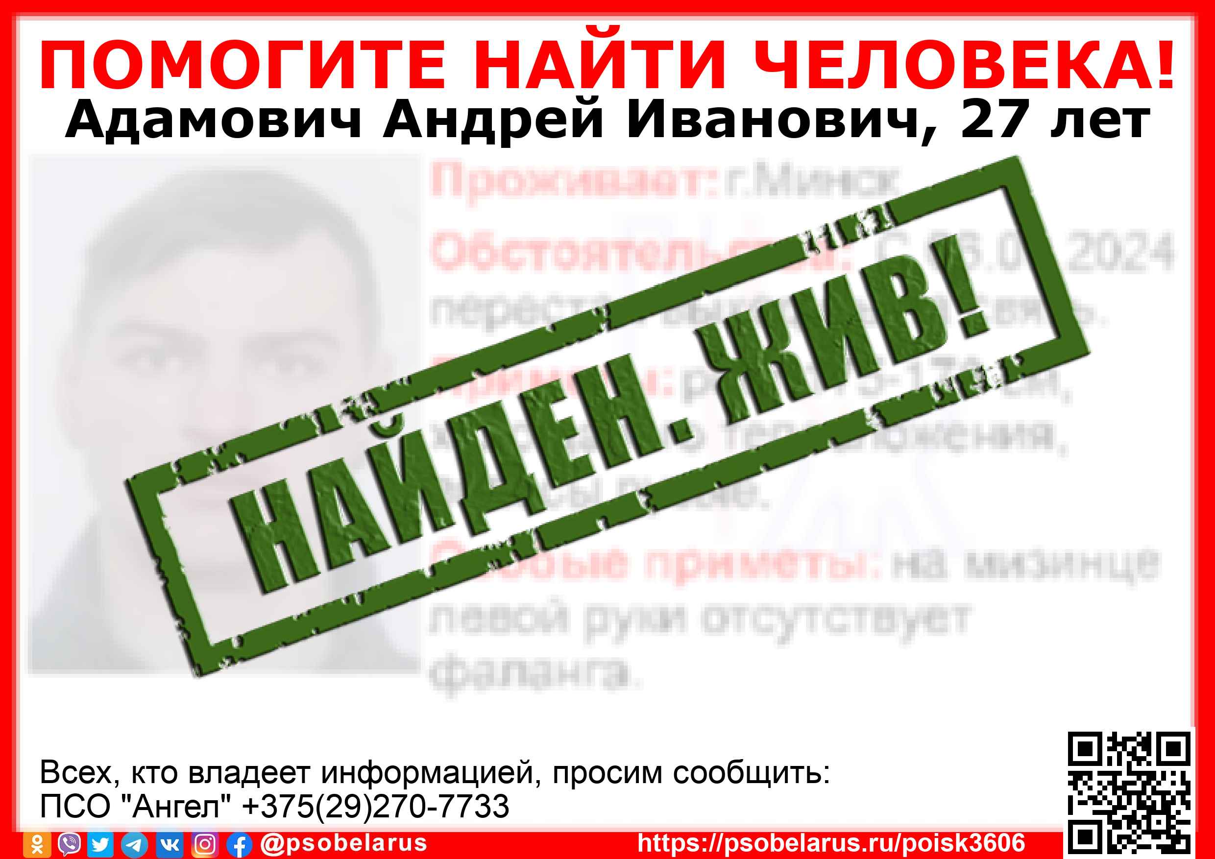 Всех, кто владеет информацией, просим сообщить: ПСО "Ангел" +375(29)270-7733 |