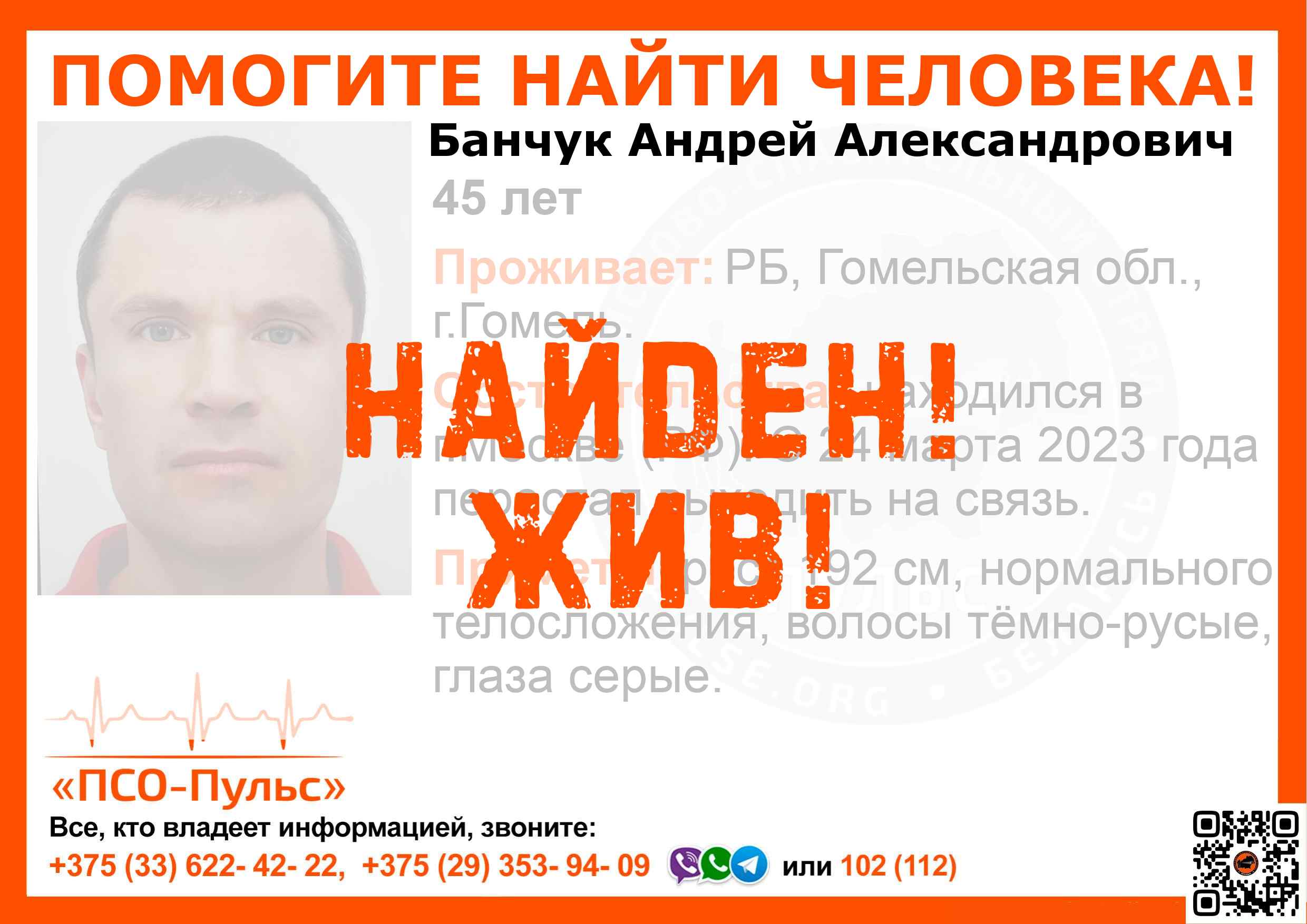 Всех, кто владеет информацией, просим сообщить: ПСО "ПСО-Пульс" +375(33)622-4222 |