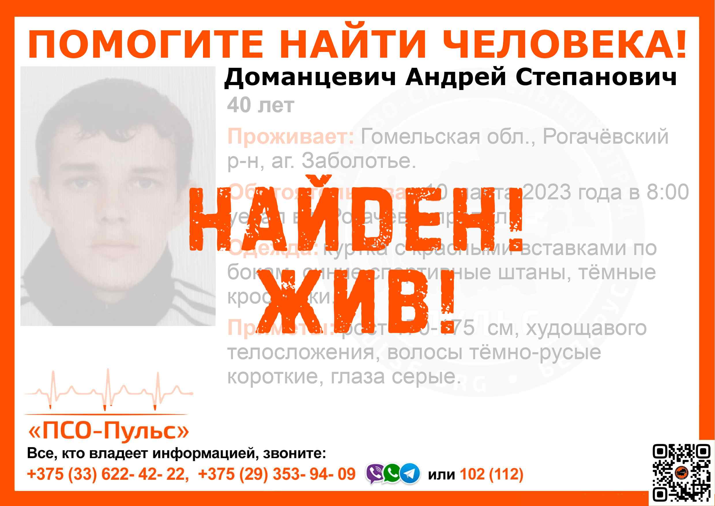 Всех, кто владеет информацией, просим сообщить: ПСО "ПСО-Пульс" +375(33)622-4222 |