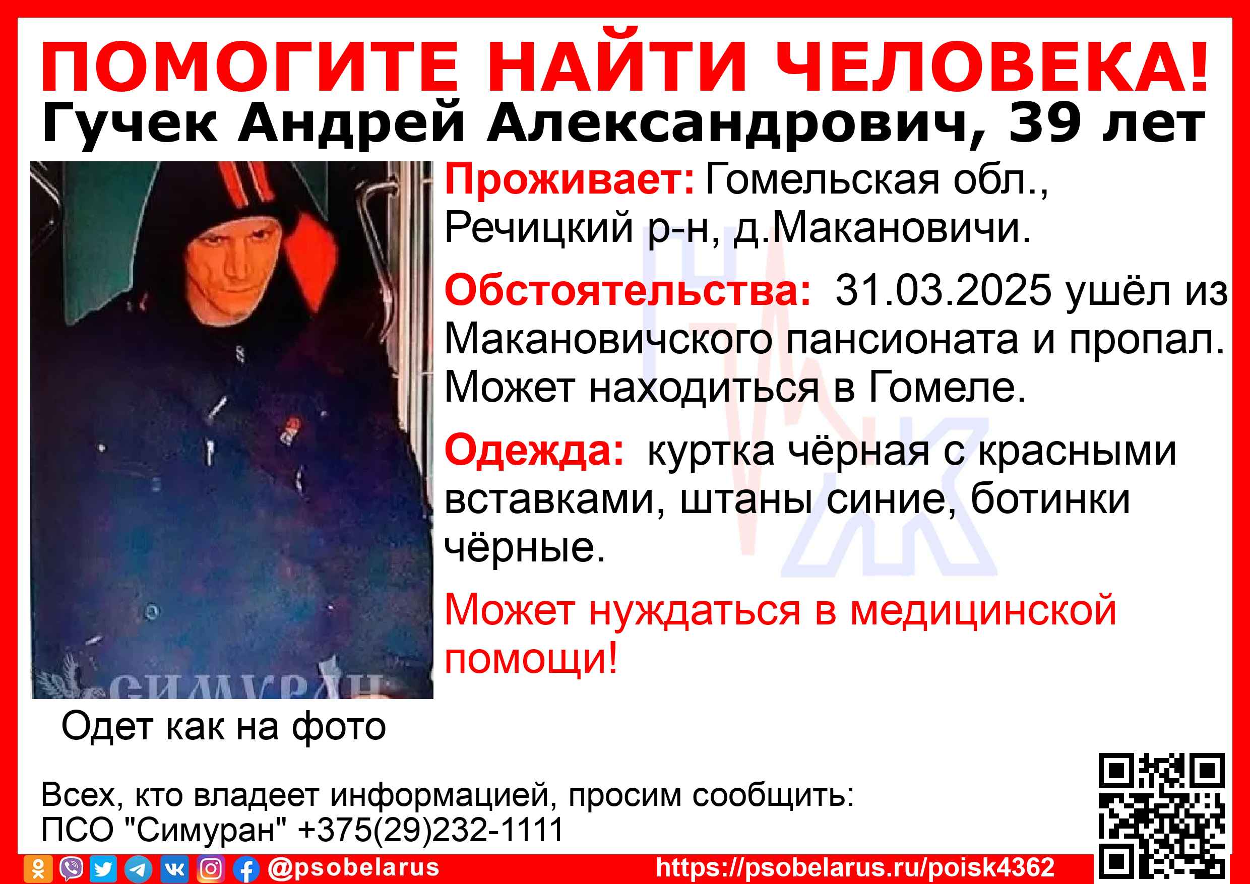 Всех, кто владеет информацией, просим сообщить: ПСО "Симуран" +375(29)232-1111 |