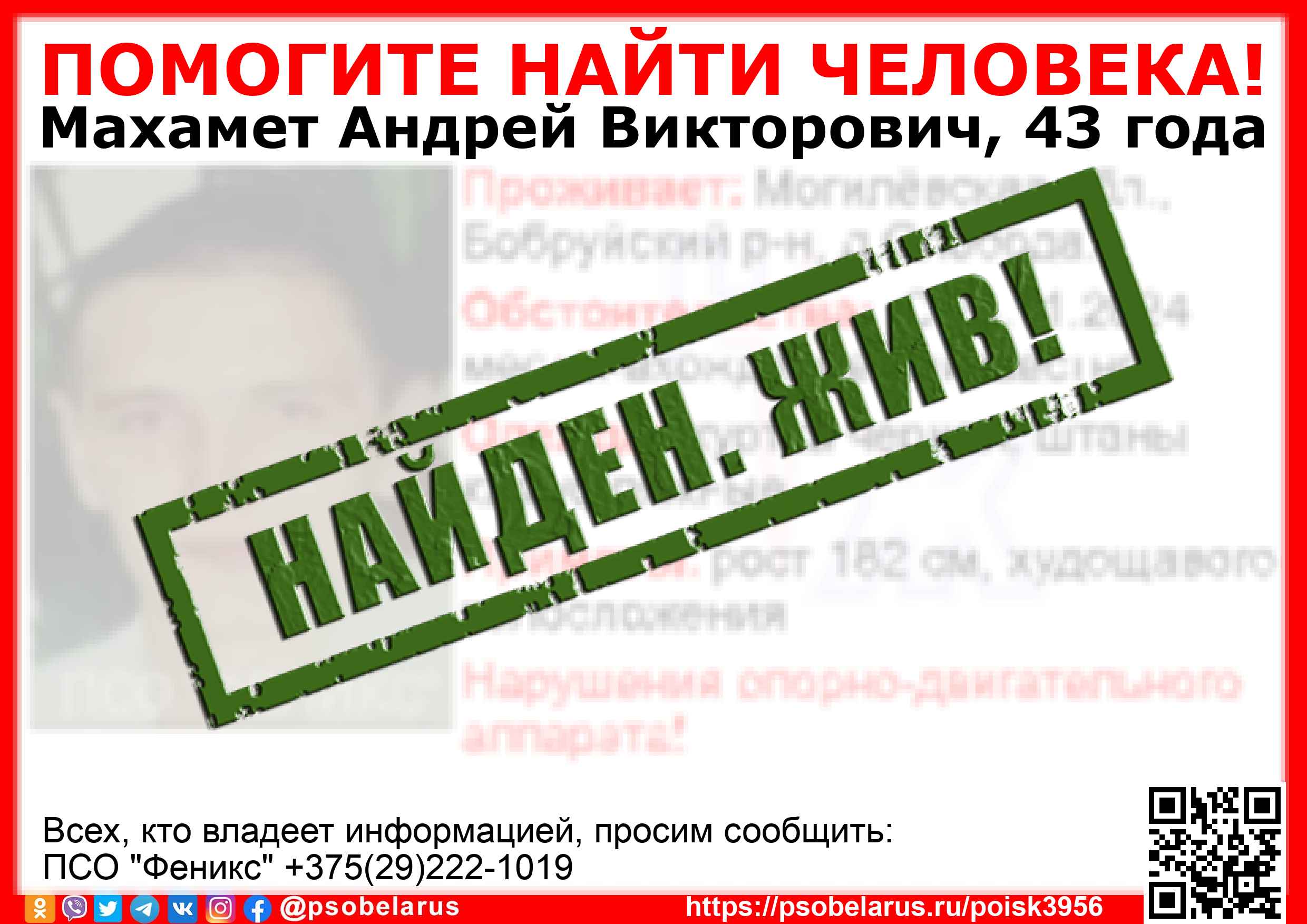 | Всех, кто владеет информацией, просим сообщить: ПСО "Феникс" +375(29)222-1019 |  |