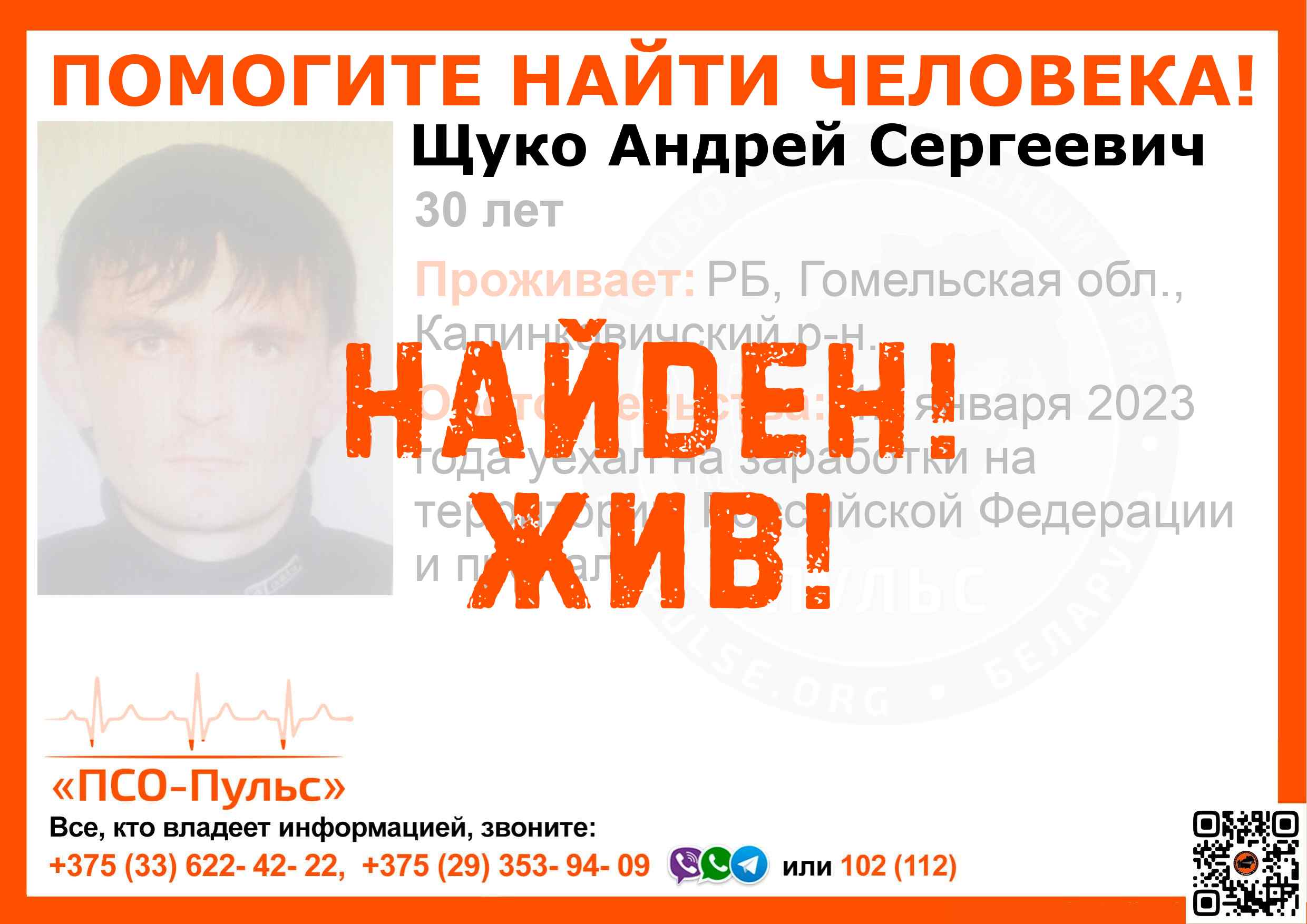 Всех, кто владеет информацией, просим сообщить: ПСО "ПСО-Пульс" +375(33)622-4222 |