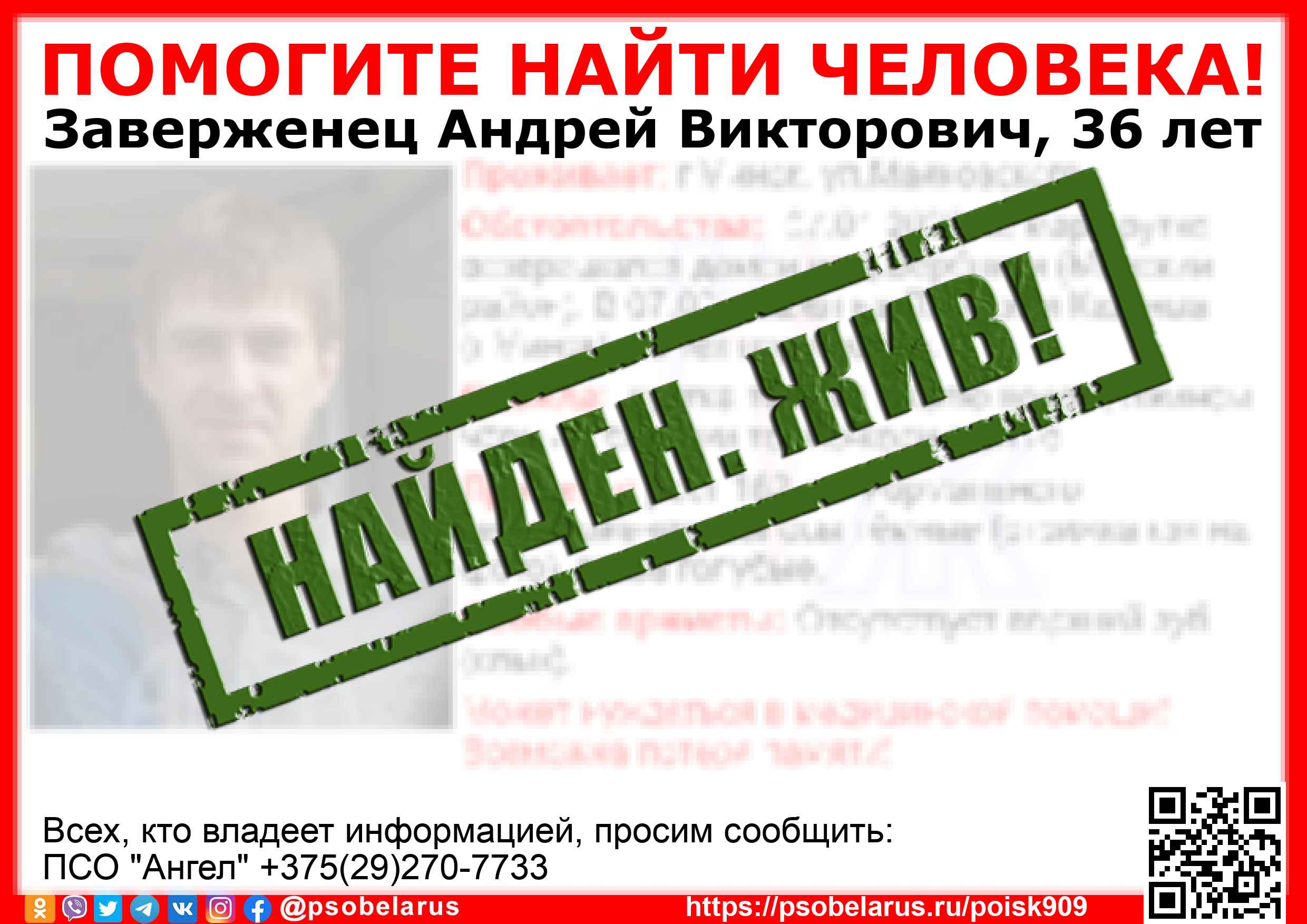 Всех, кто владеет информацией, просим сообщить: ПСО "Ангел" +375(29)270-7733 |