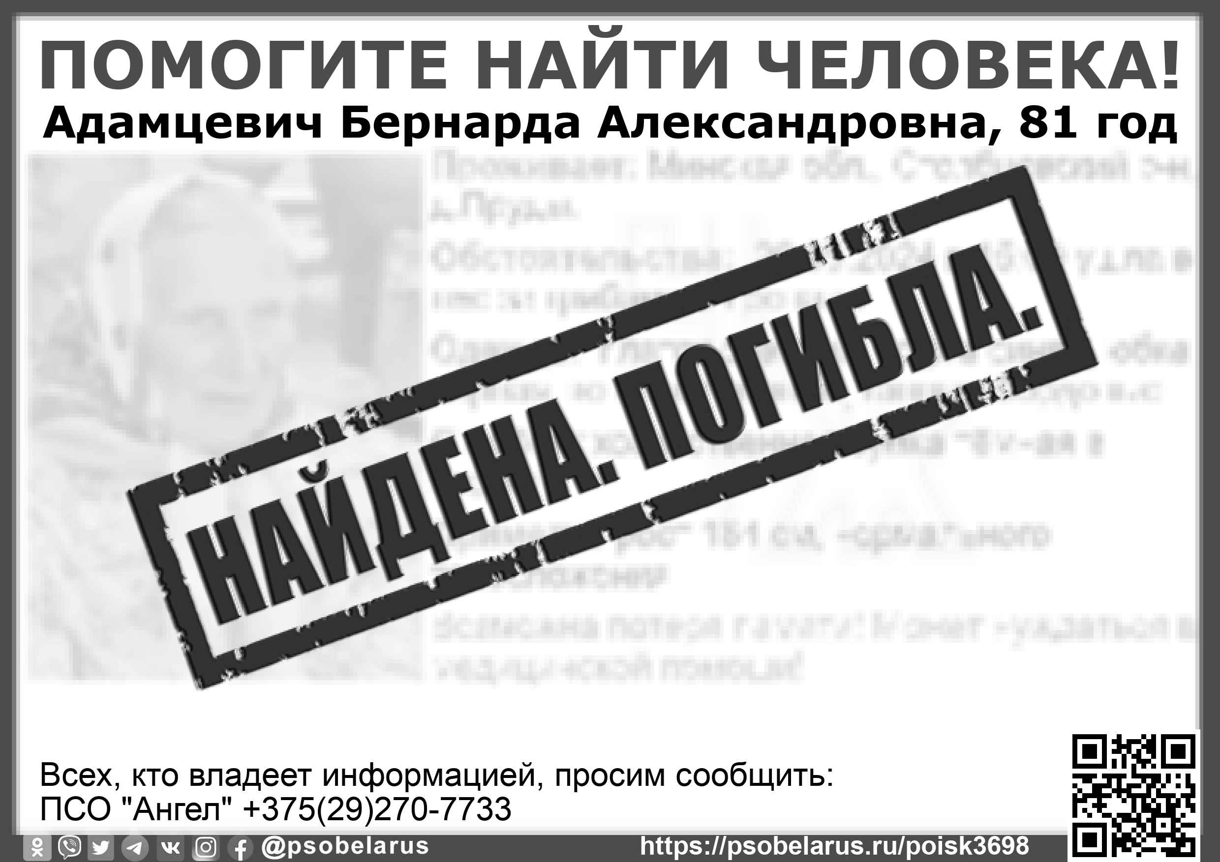 Всех, кто владеет информацией, просим сообщить: ПСО "Ангел" +375(29)270-7733 |