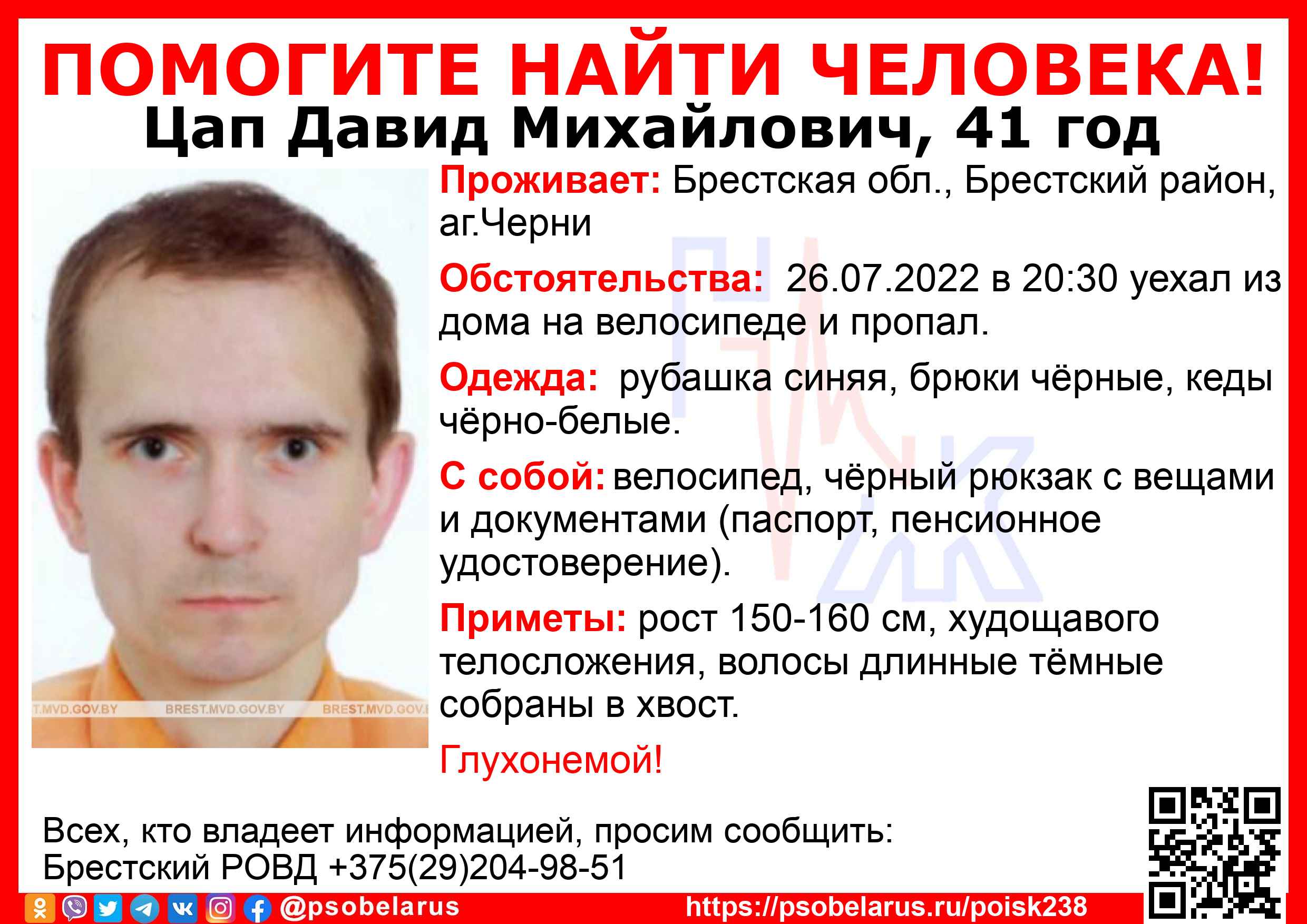 Скачать ориентировкуДля оперативного получения информации о пропавших людях и сборах на поиски можно подписаться на бота оповещения: Телеграм