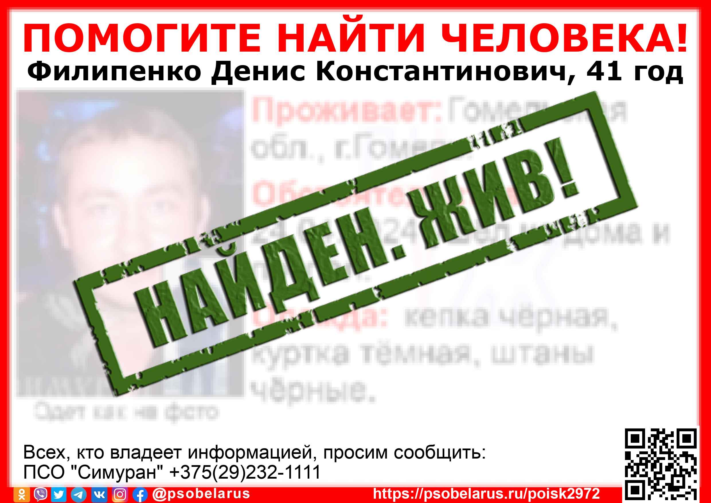 Всех, кто владеет информацией, просим сообщить: ПСО "Симуран" +375(29)232-1111 |