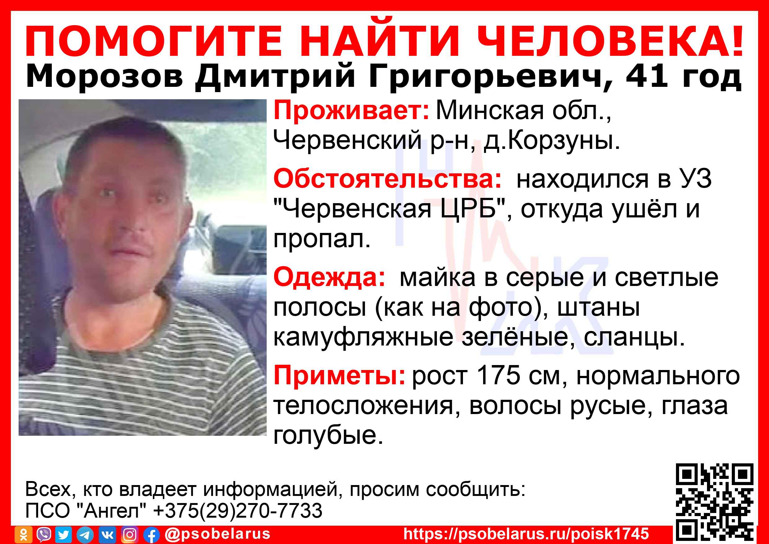 Всех, кто владеет информацией, просим сообщить: ПСО "Ангел" +375(29)270-7733 |