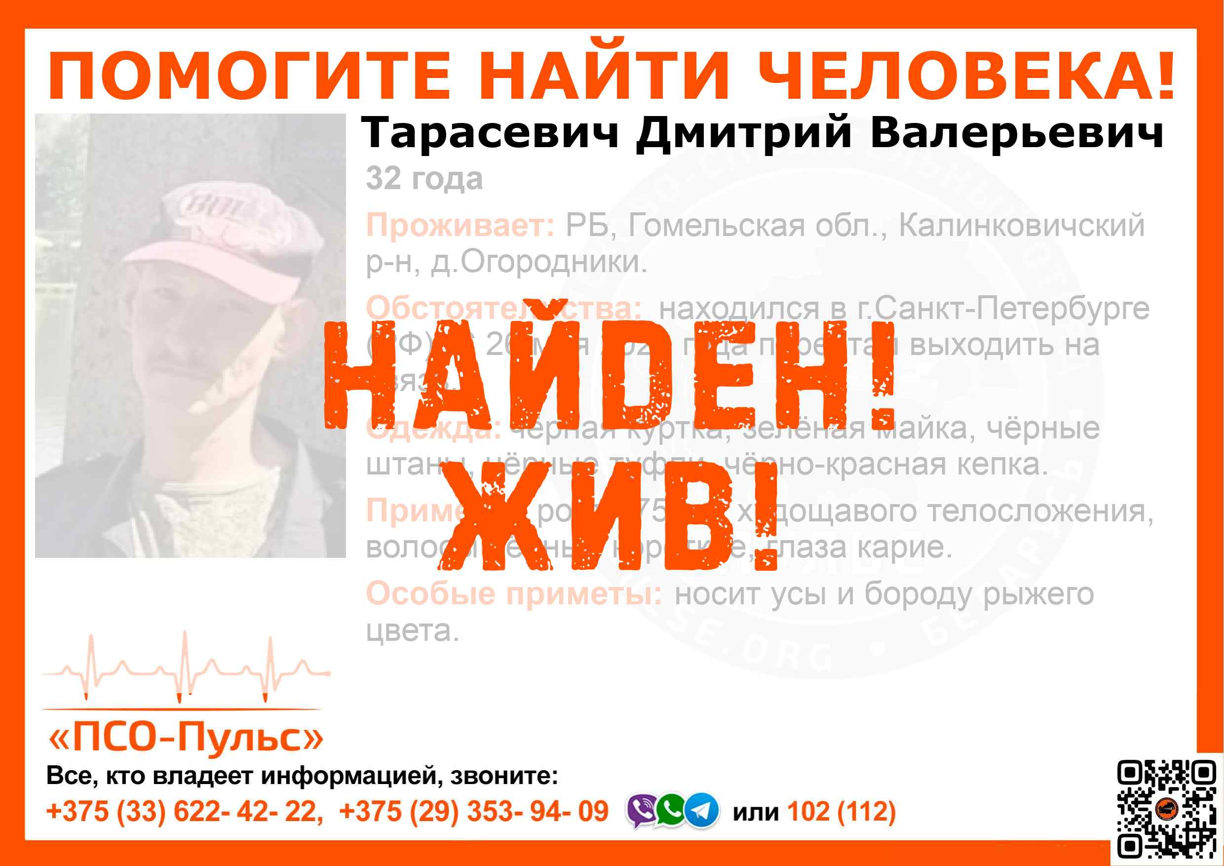 Всех, кто владеет информацией, просим сообщить: ПСО "ПСО-Пульс" +375(33)622-4222 |