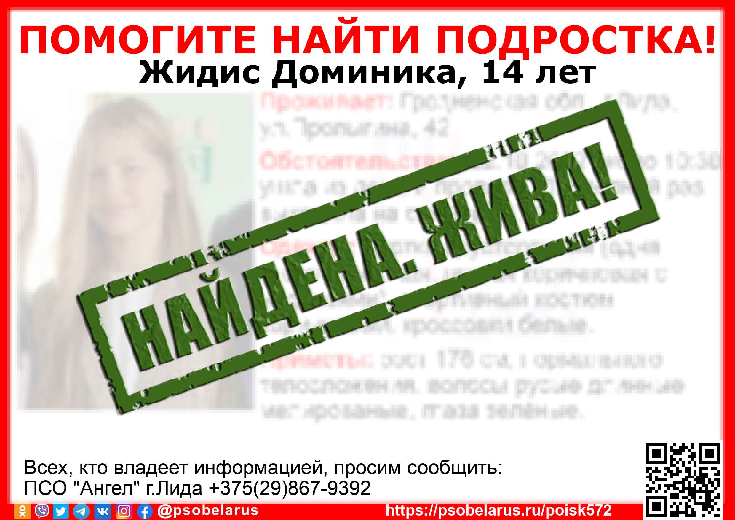 Всех, кто владеет информацией, просим сообщить: ПСО "Ангел" г.Лида +375(29)867-9392 |