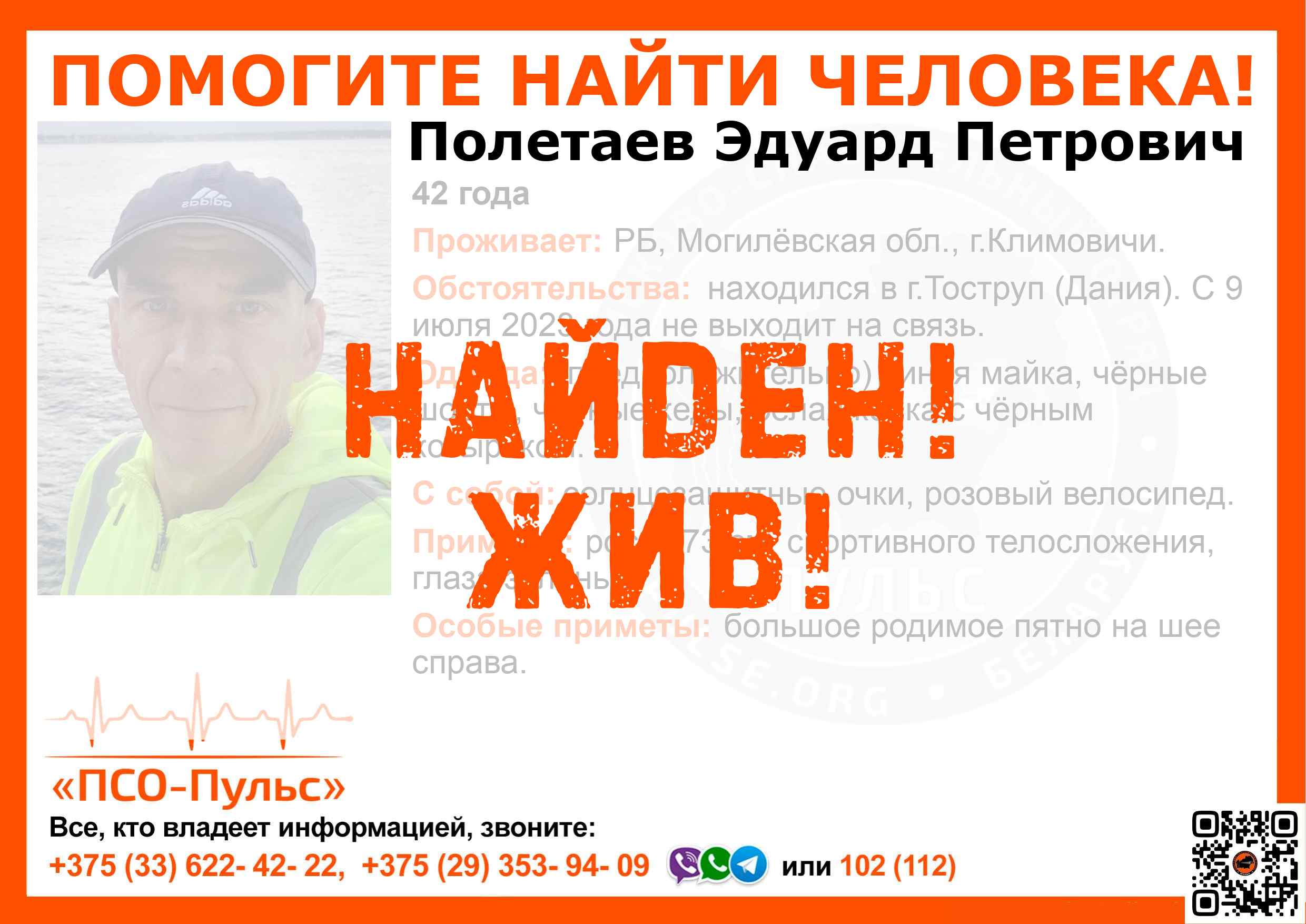 Всех, кто владеет информацией, просим сообщить: ПСО "ПСО-Пульс" +375(33)622-4222 |