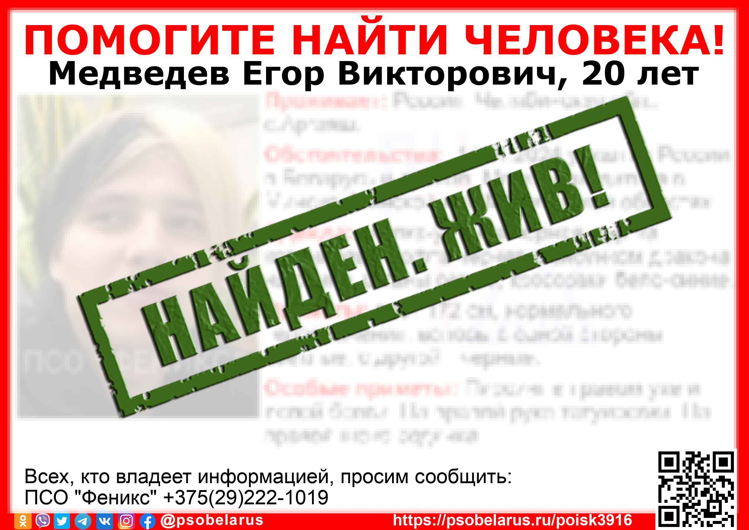 14.11.2024 уехал из России в Беларусь и пропал. Может находиться в Минске, Минской или Могилёвской областях.