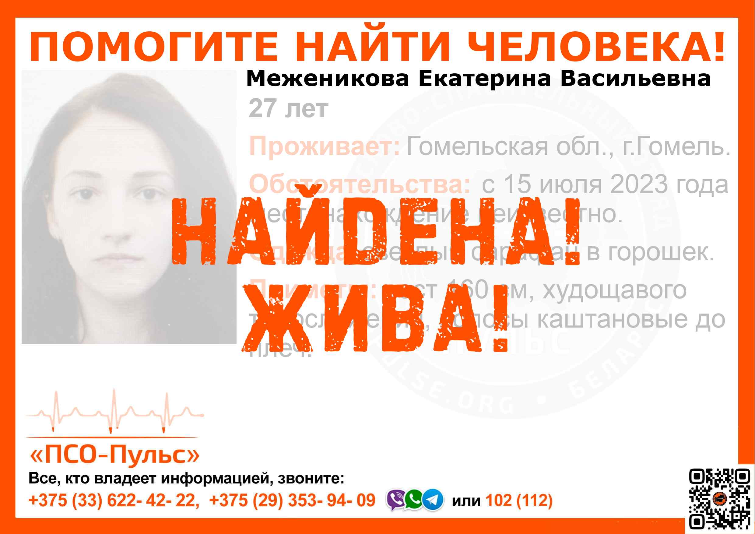Всех, кто владеет информацией, просим сообщить: ПСО "ПСО-Пульс" +375(33)622-4222 |