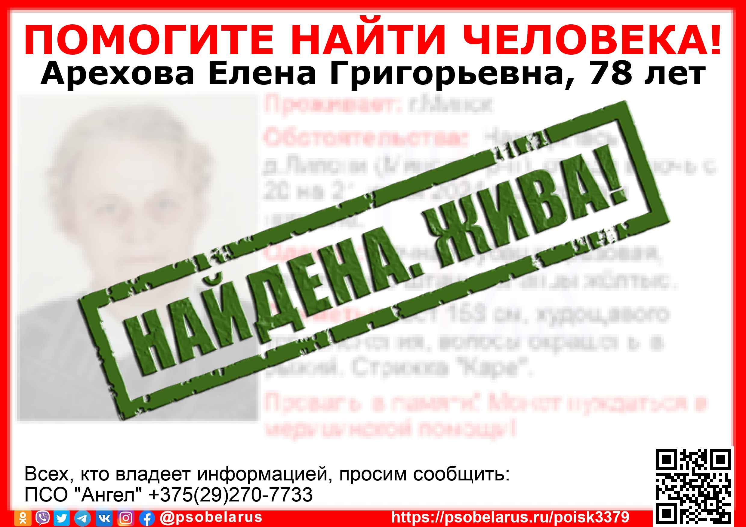 Всех, кто владеет информацией, просим сообщить: ПСО "Ангел" +375(29)270-7733  |