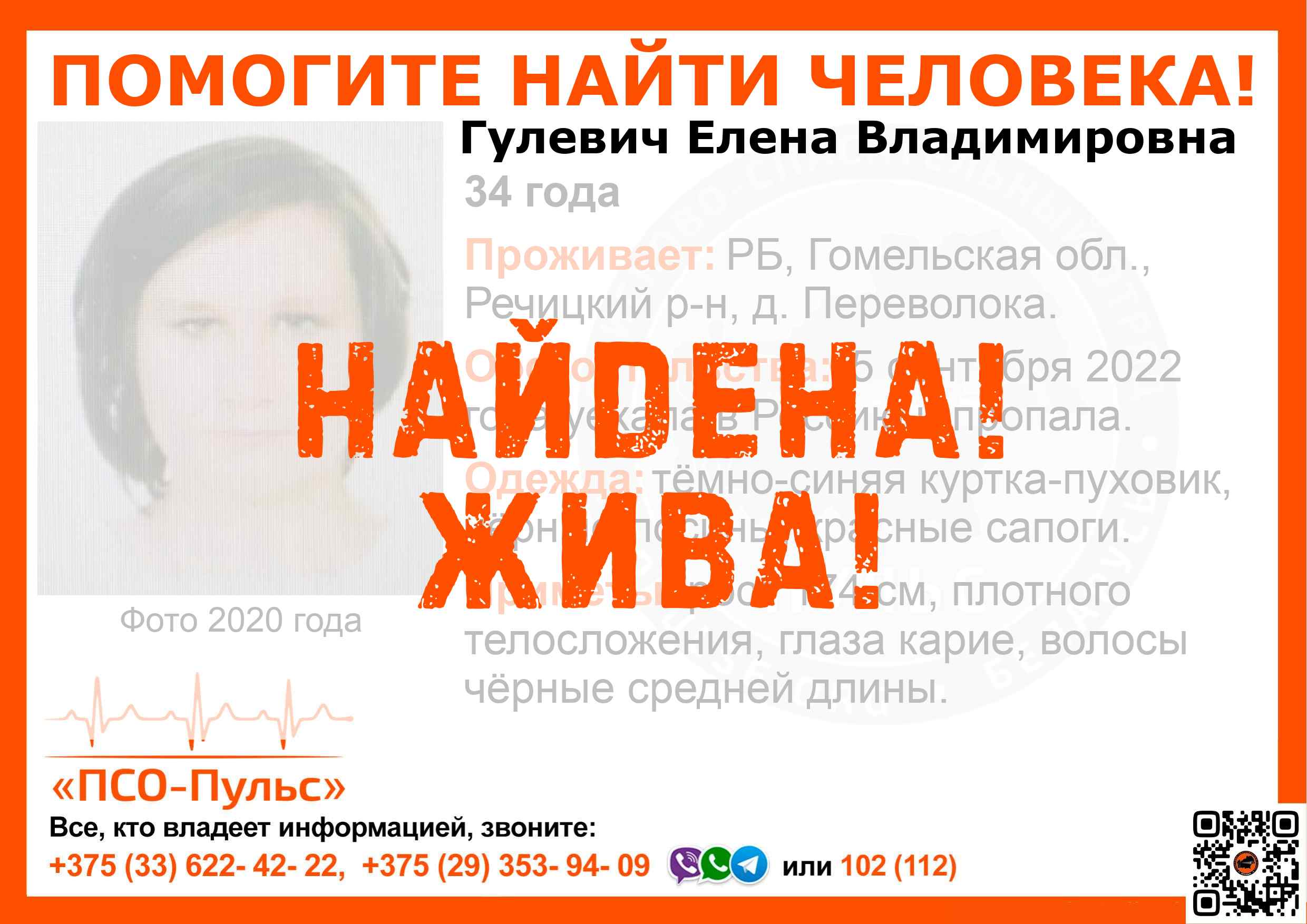 Всех, кто владеет информацией, просим сообщить: ПСО "ПСО-Пульс" +375(33)622-4222 |
