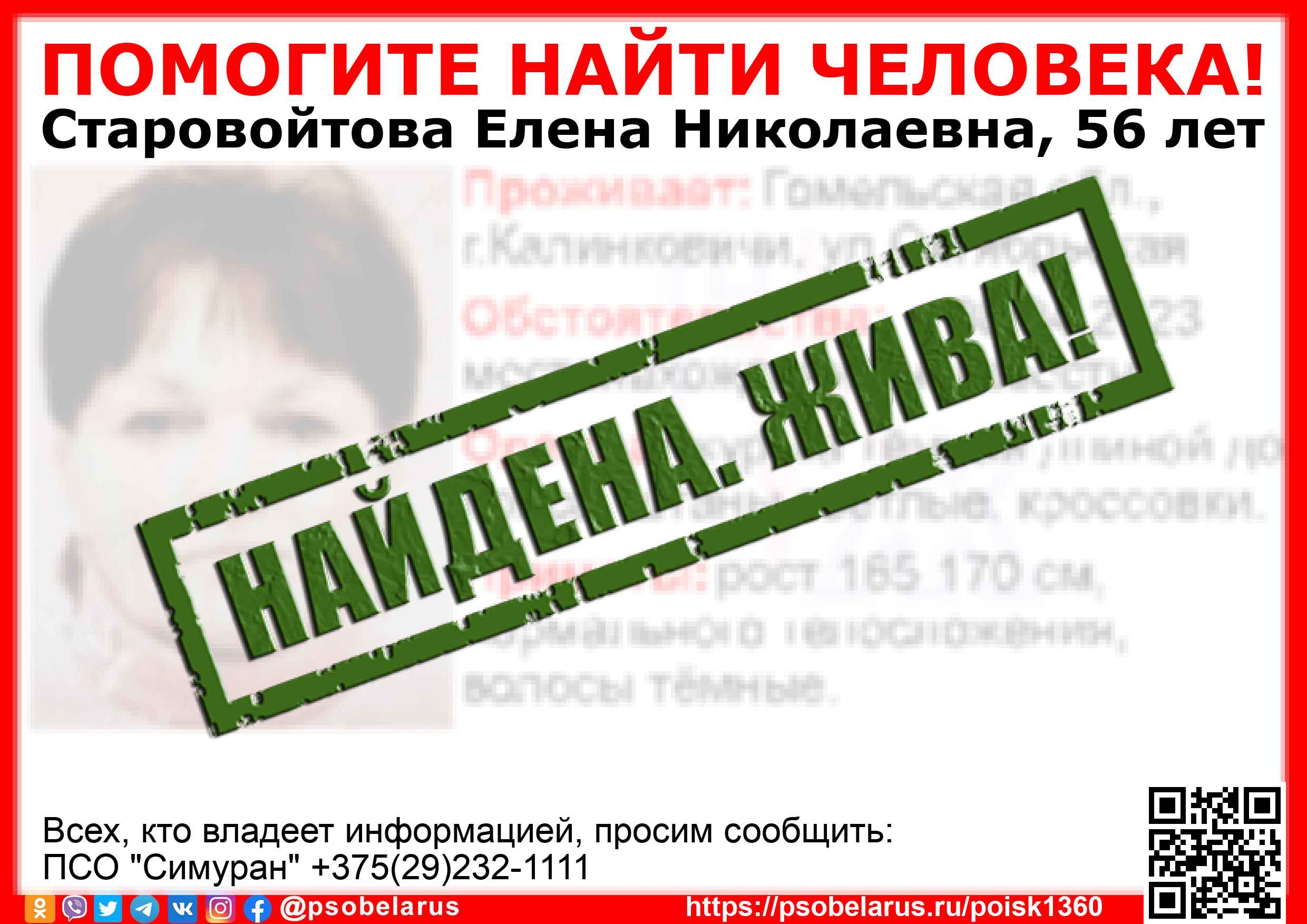 Всех, кто владеет информацией, просим сообщить: ПСО "Симуран" +375(29)232-1111 |