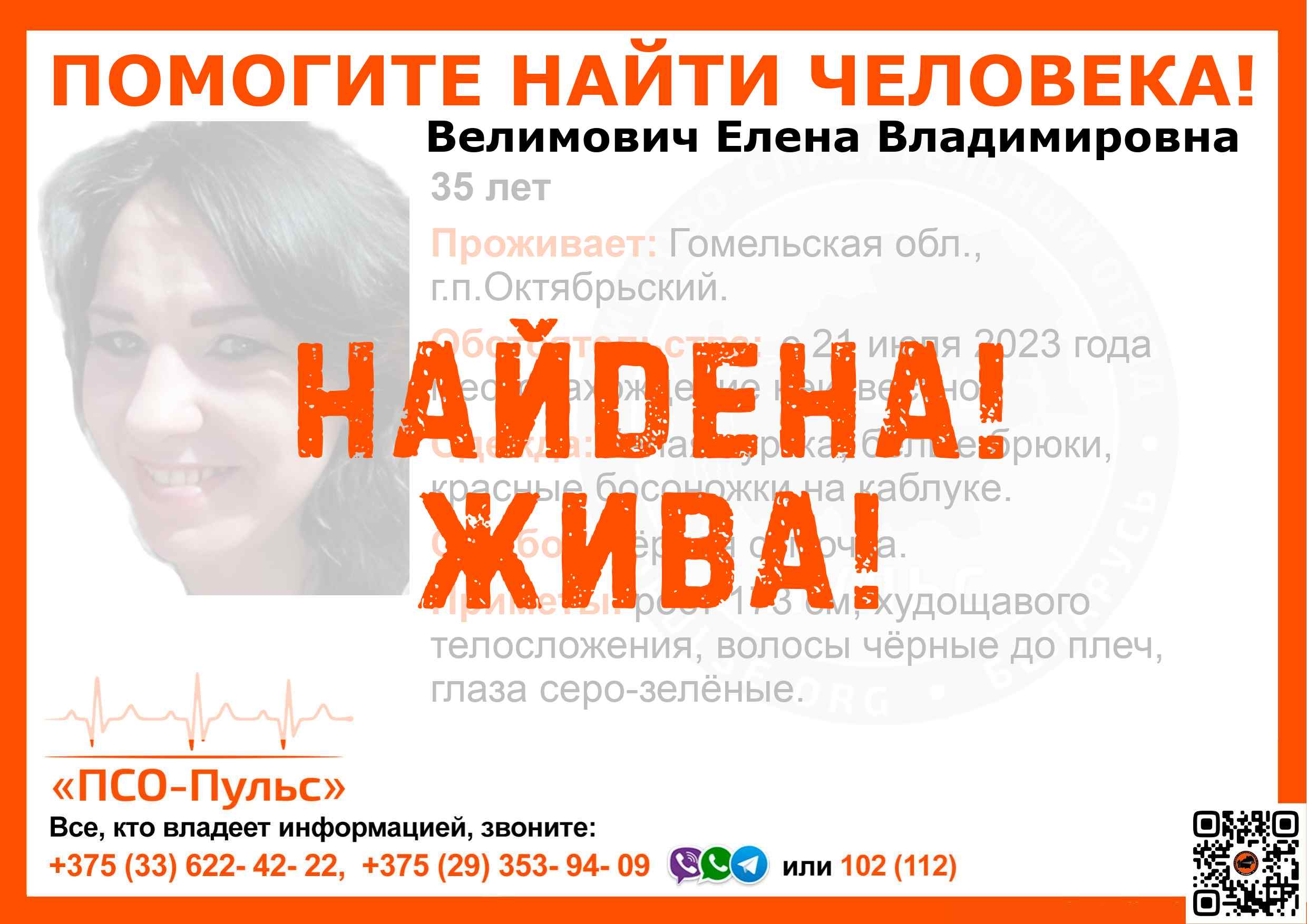Всех, кто владеет информацией, просим сообщить: ПСО "ПСО-Пульс" +375(33)622-4222 |