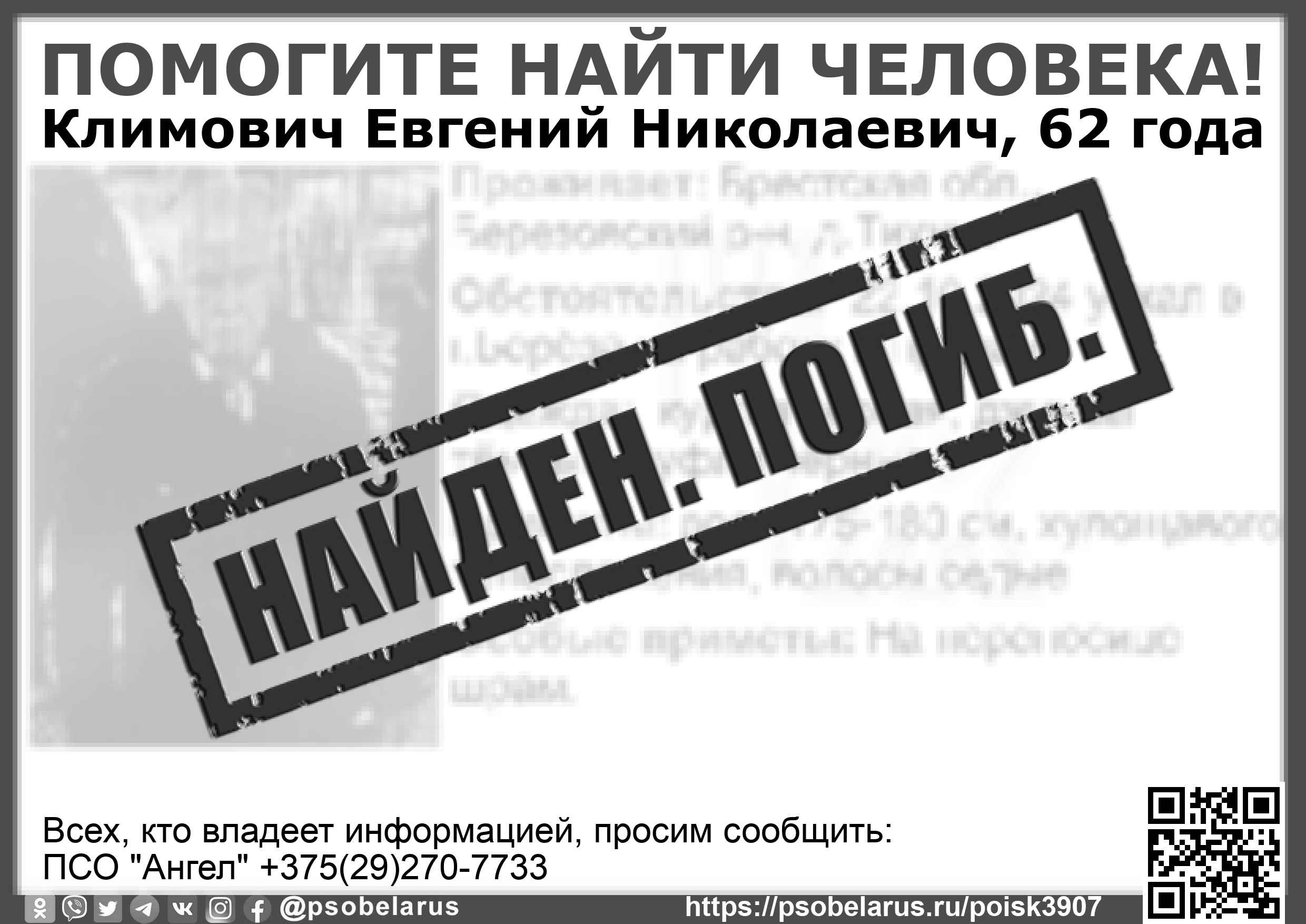 Всех, кто владеет информацией, просим сообщить: ПСО "Ангел" +375(29)270-7733 |