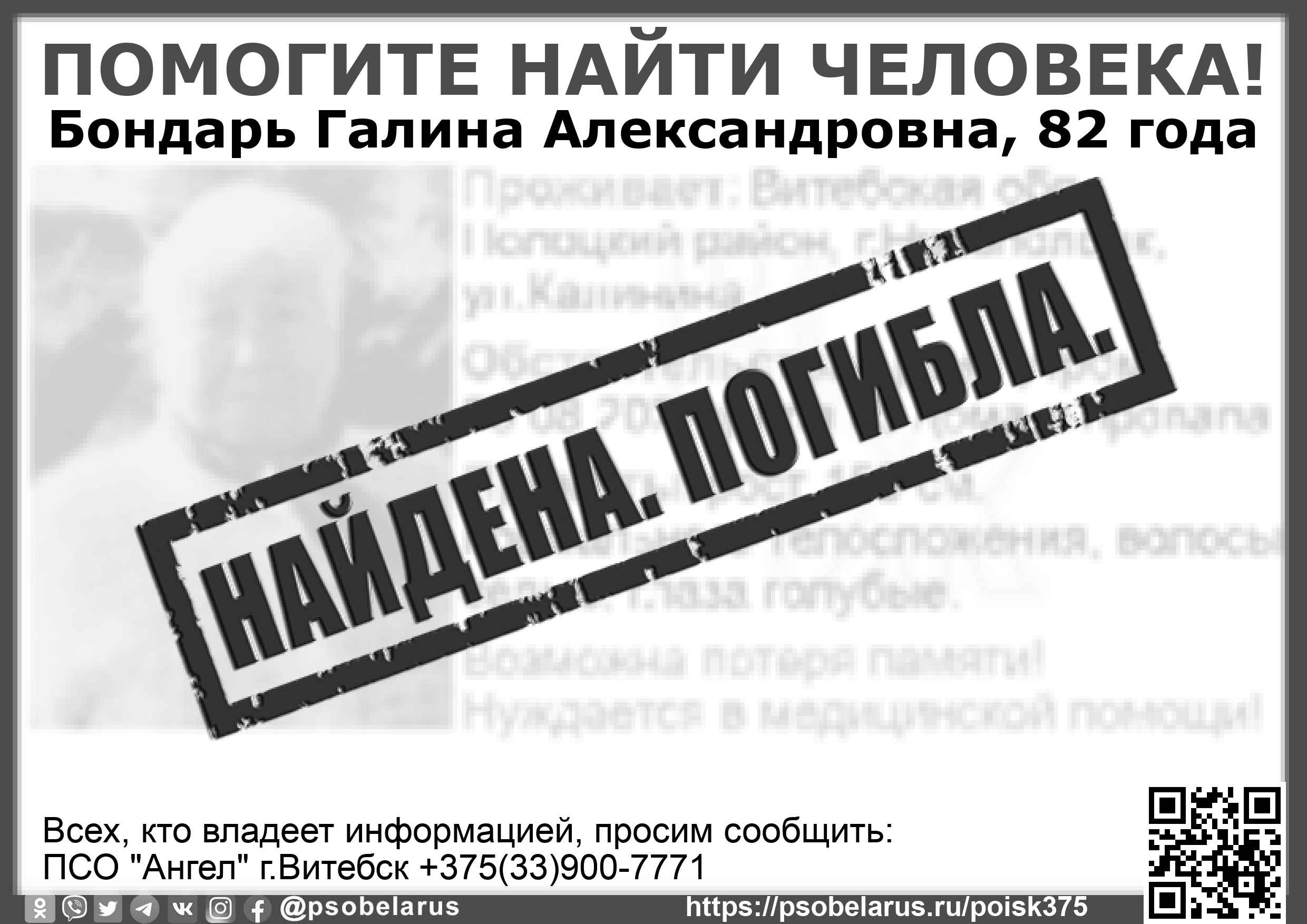 | Всех, кто владеет информацией, просим сообщить: ПСО "Ангел" г.Витебск +375(33)900-7771 |  |