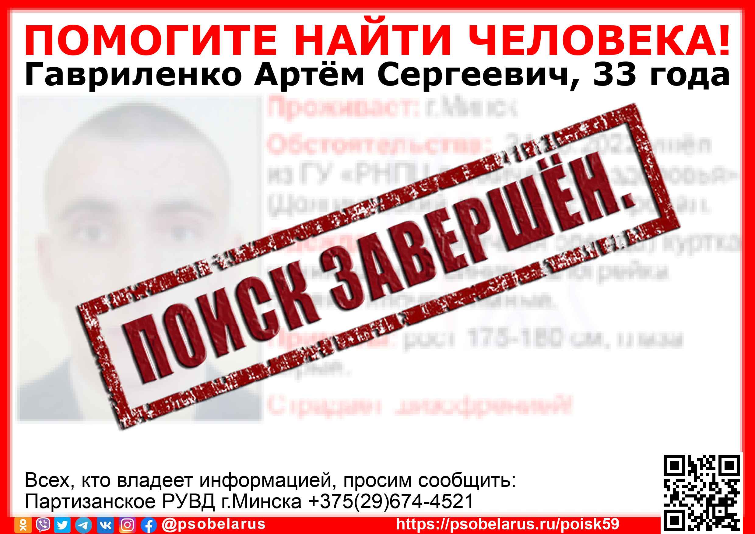 Скачать ориентировкуДля оперативного получения информации о пропавших людях и сборах на поиски можно подписаться на бота оповещения: Телеграм