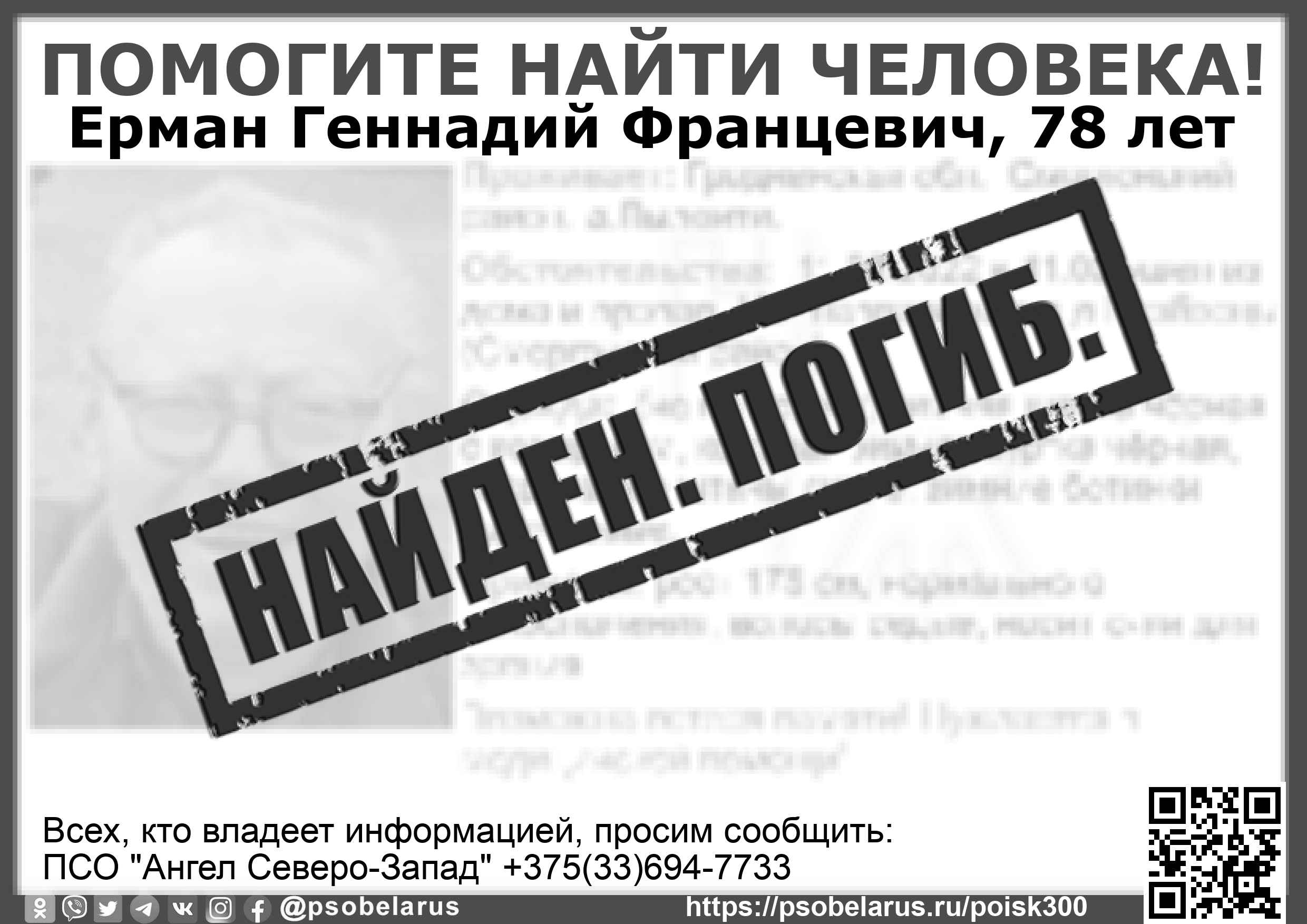 Всех, кто владеет информацией, просим сообщить: ПСО "Ангел Северо-Запад" +375(33)694-7733 |