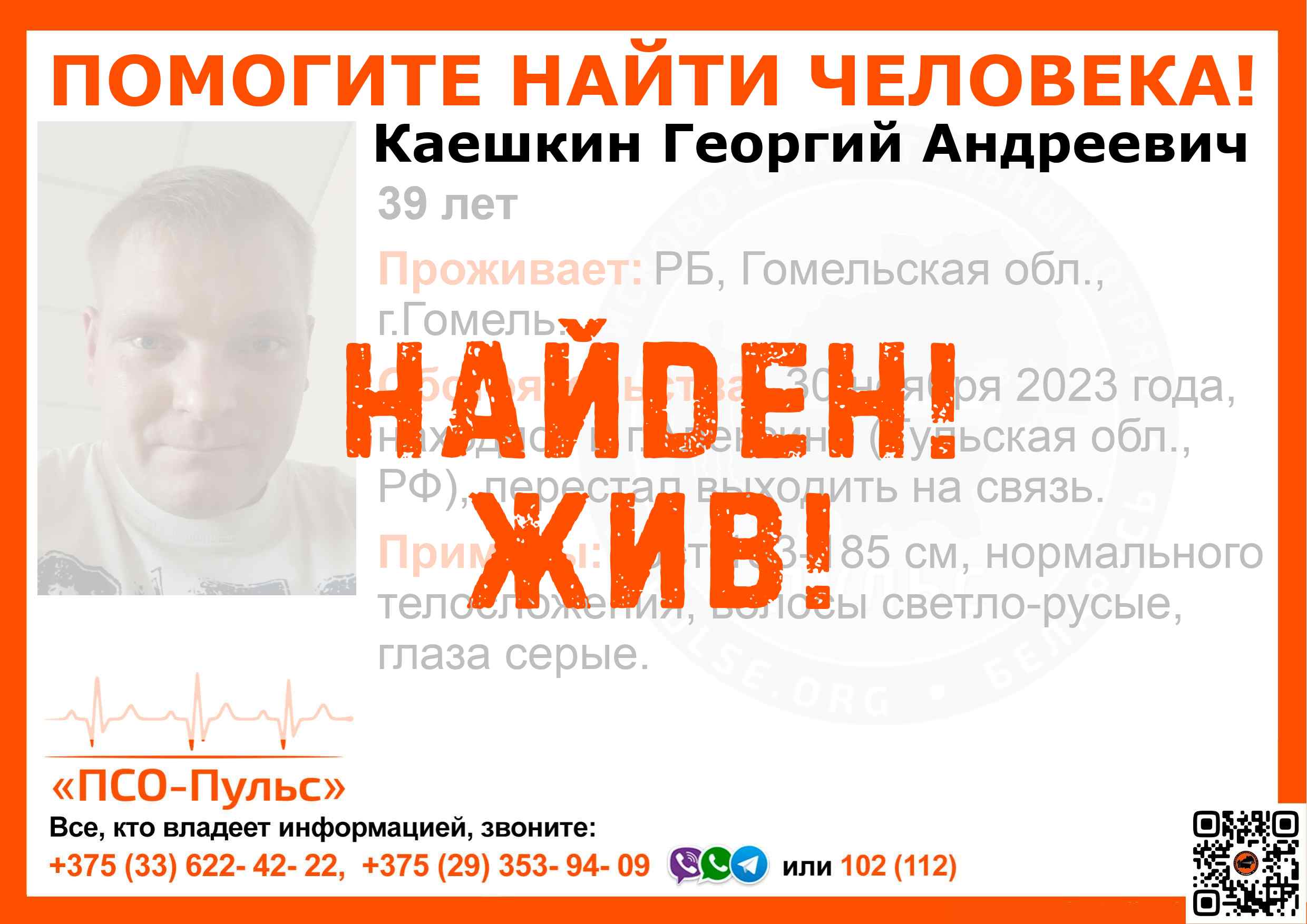 Всех, кто владеет информацией, просим сообщить: ПСО "ПСО-Пульс" +375(33)622-4222 |