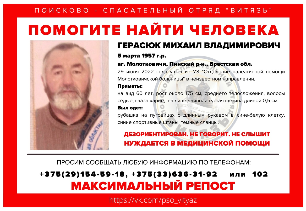 Всех, кто владеет информацией, просим сообщить: ПСО "ВИТЯЗЬ" +375(29)154-59-18 |