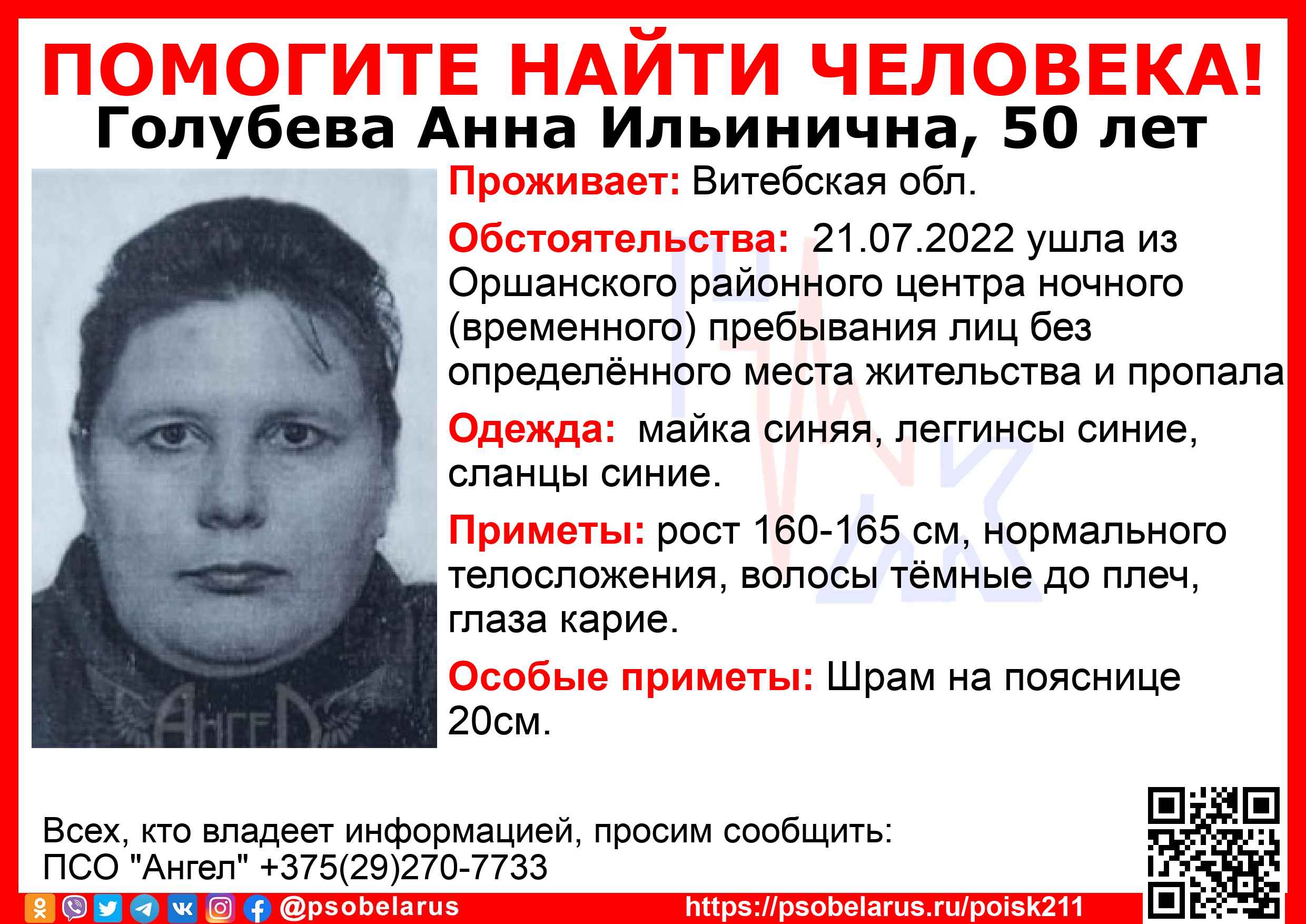 Скачать ориентировкуДля оперативного получения информации о пропавших людях и сборах на поиски можно подписаться на бота оповещения: Телеграм