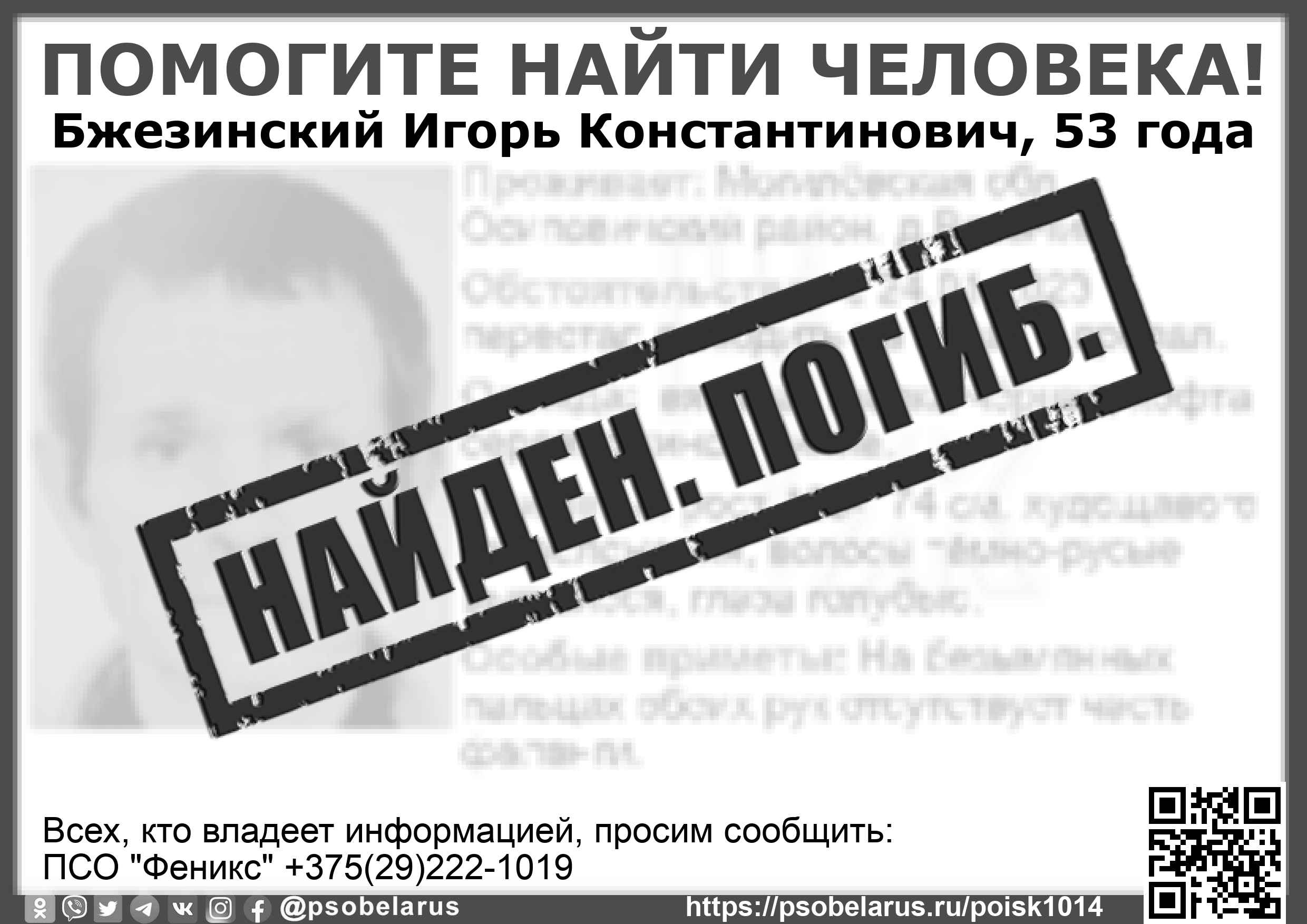 Всех, кто владеет информацией, просим сообщить: ПСО "Феникс" +375(29)222-1019 |