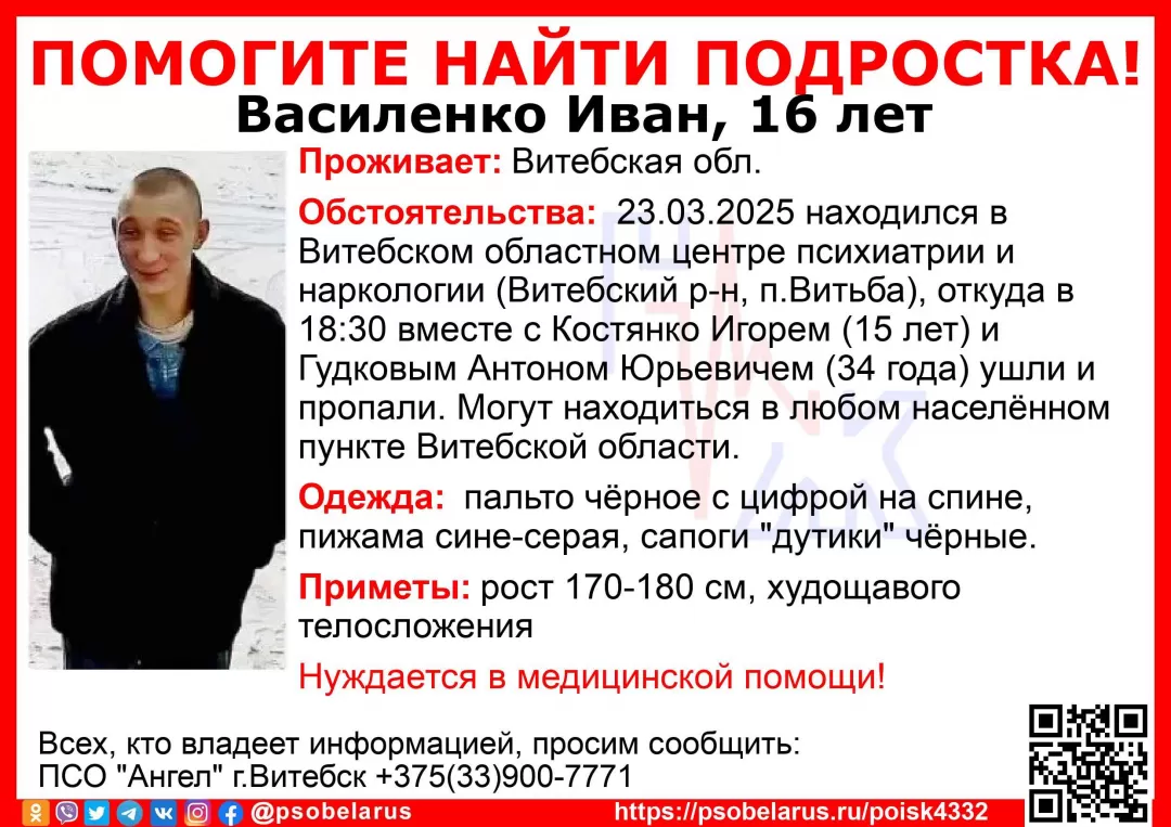 Всех, кто владеет информацией, просим сообщить: ПСО "Ангел" г.Витебск +375(33)900-7771 |