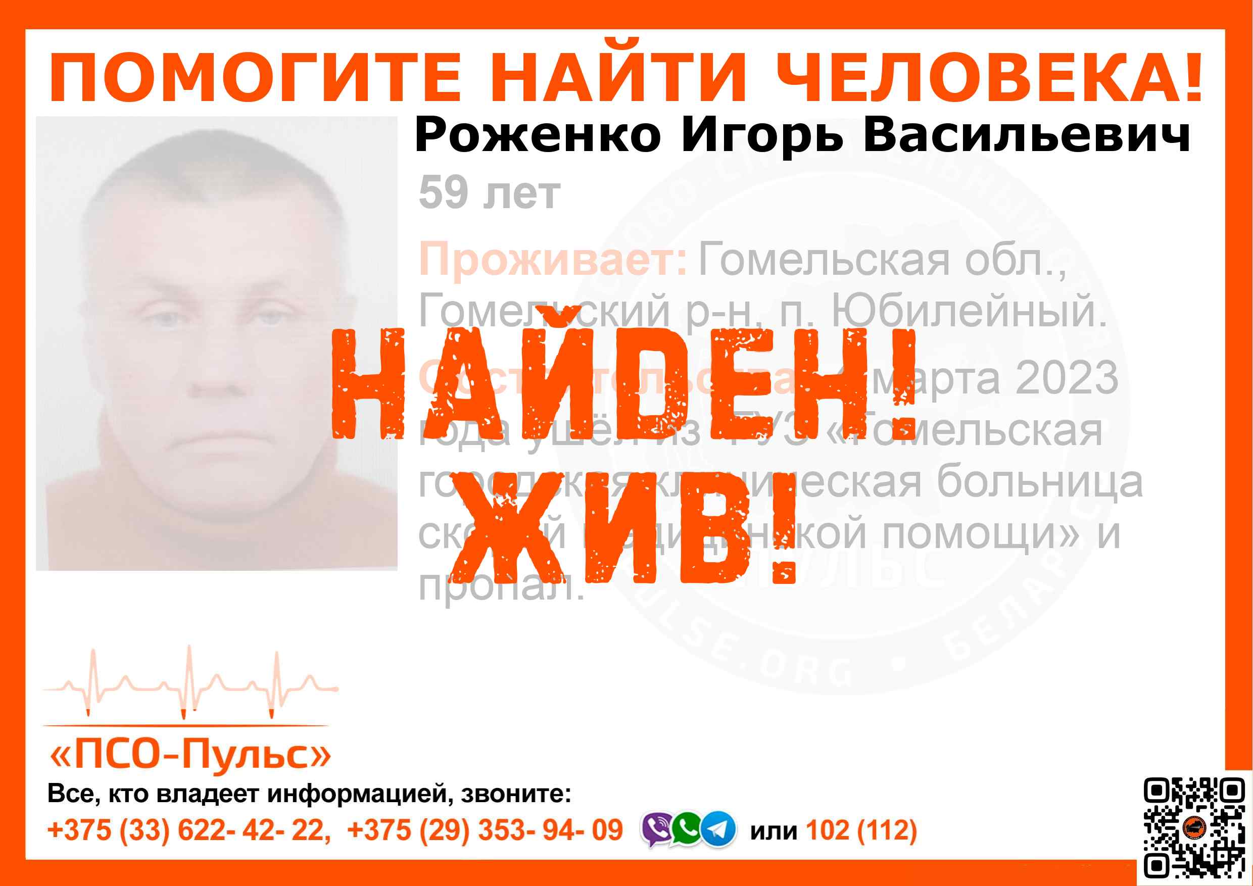 Всех, кто владеет информацией, просим сообщить: ПСО "ПСО-Пульс" +375(33)622-4222 |
