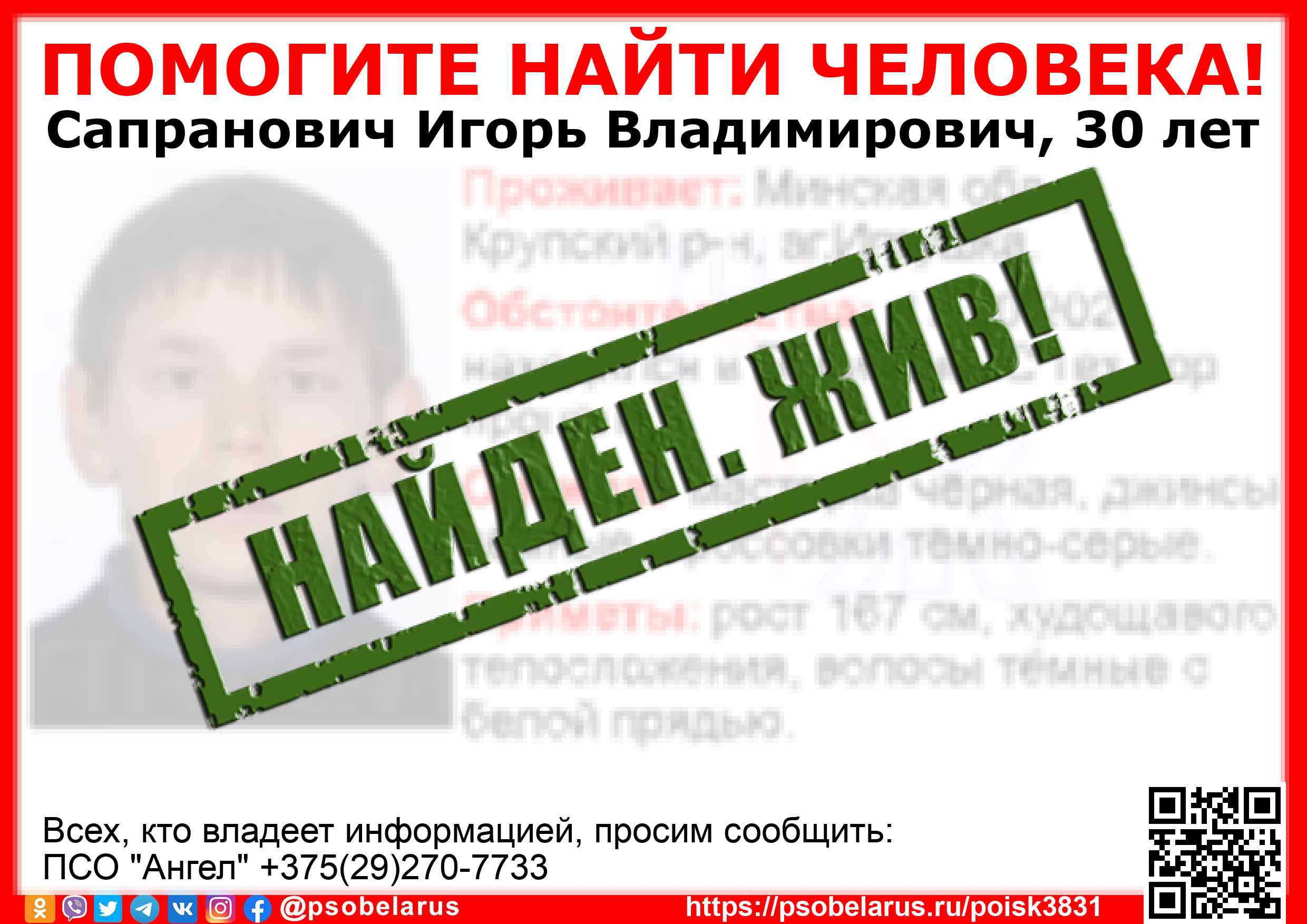 | Всех, кто владеет информацией, просим сообщить: ПСО "Ангел" +375(29)270-7733 |  |